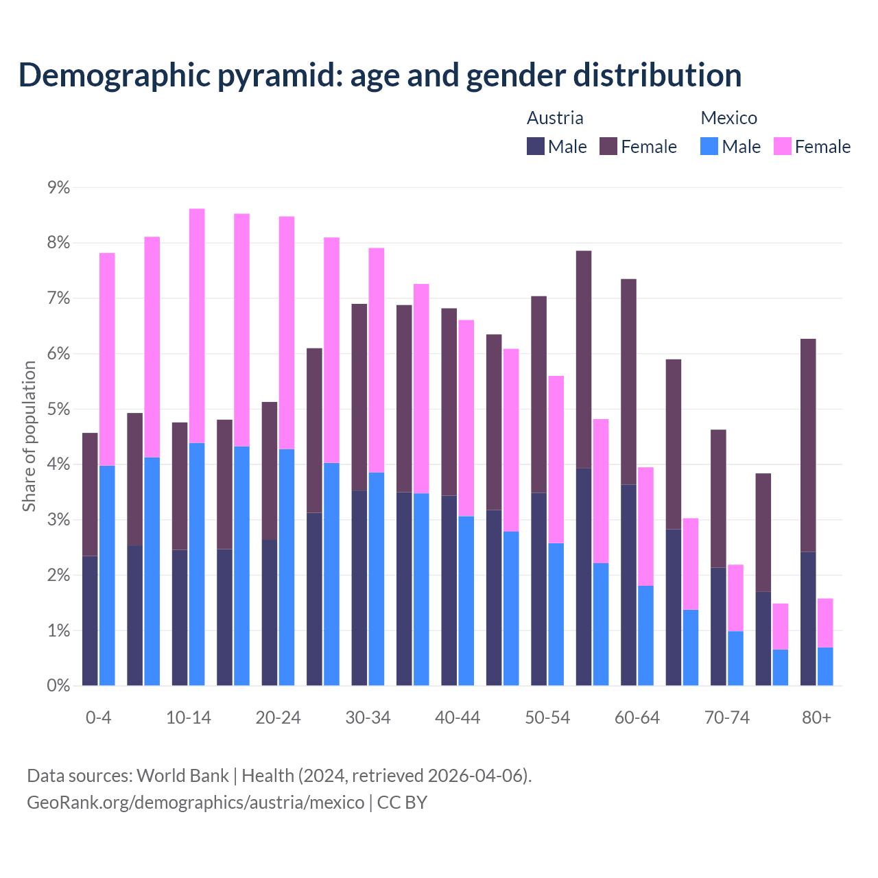 Demographics of Austria compared to Mexico:
