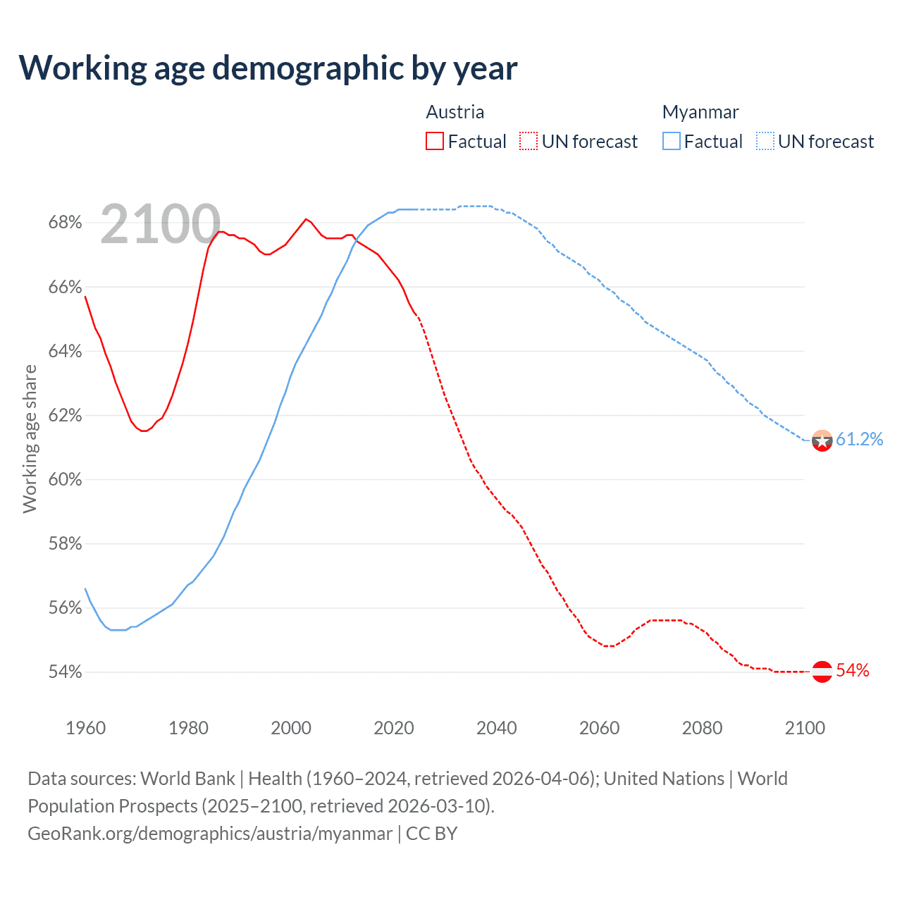 - Austria has 5.97M working age adults (aged 15-64) vs 37.8M in Myanmar.