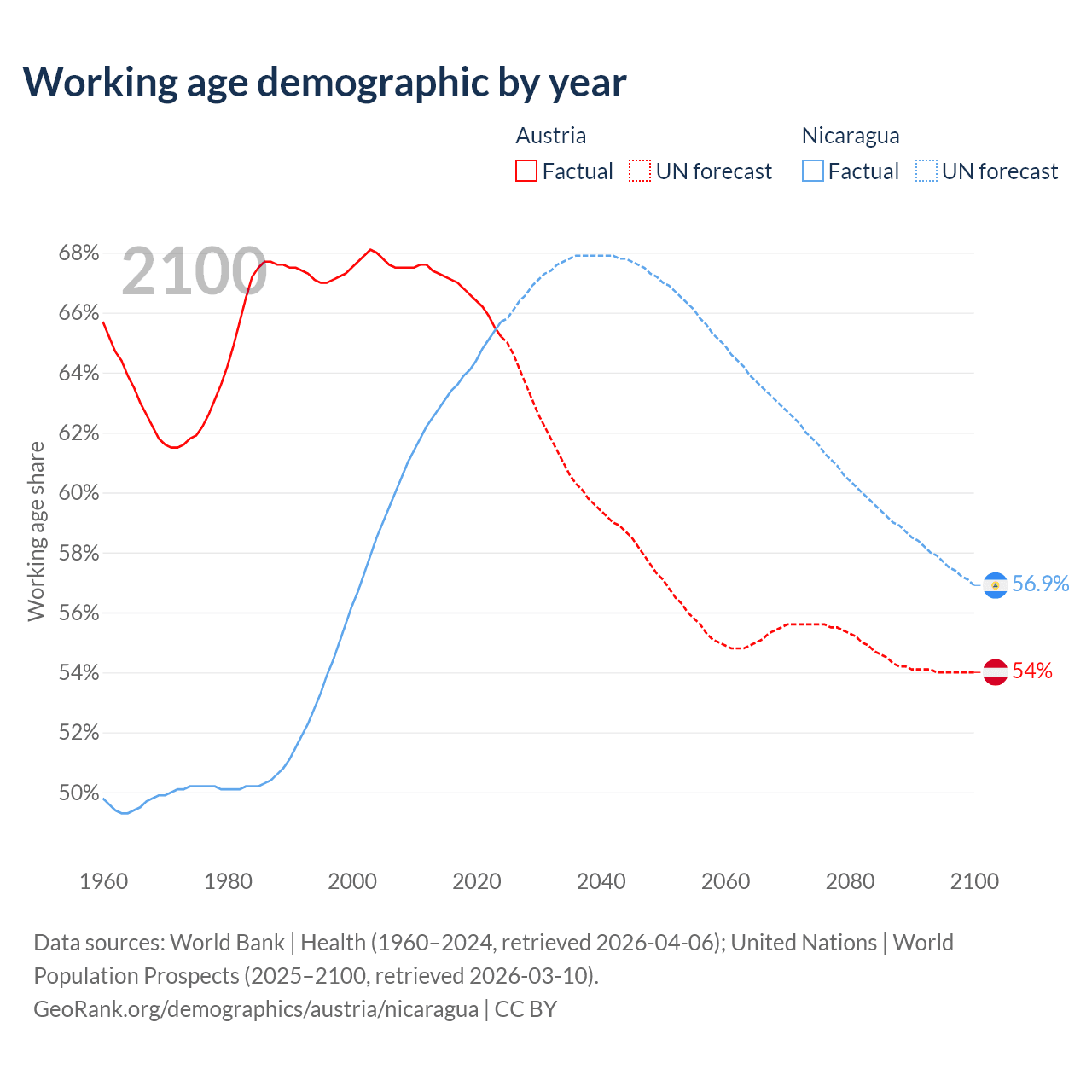 - Austria has 5.97M working age adults (aged 15-64) vs 4.68M in Nicaragua.