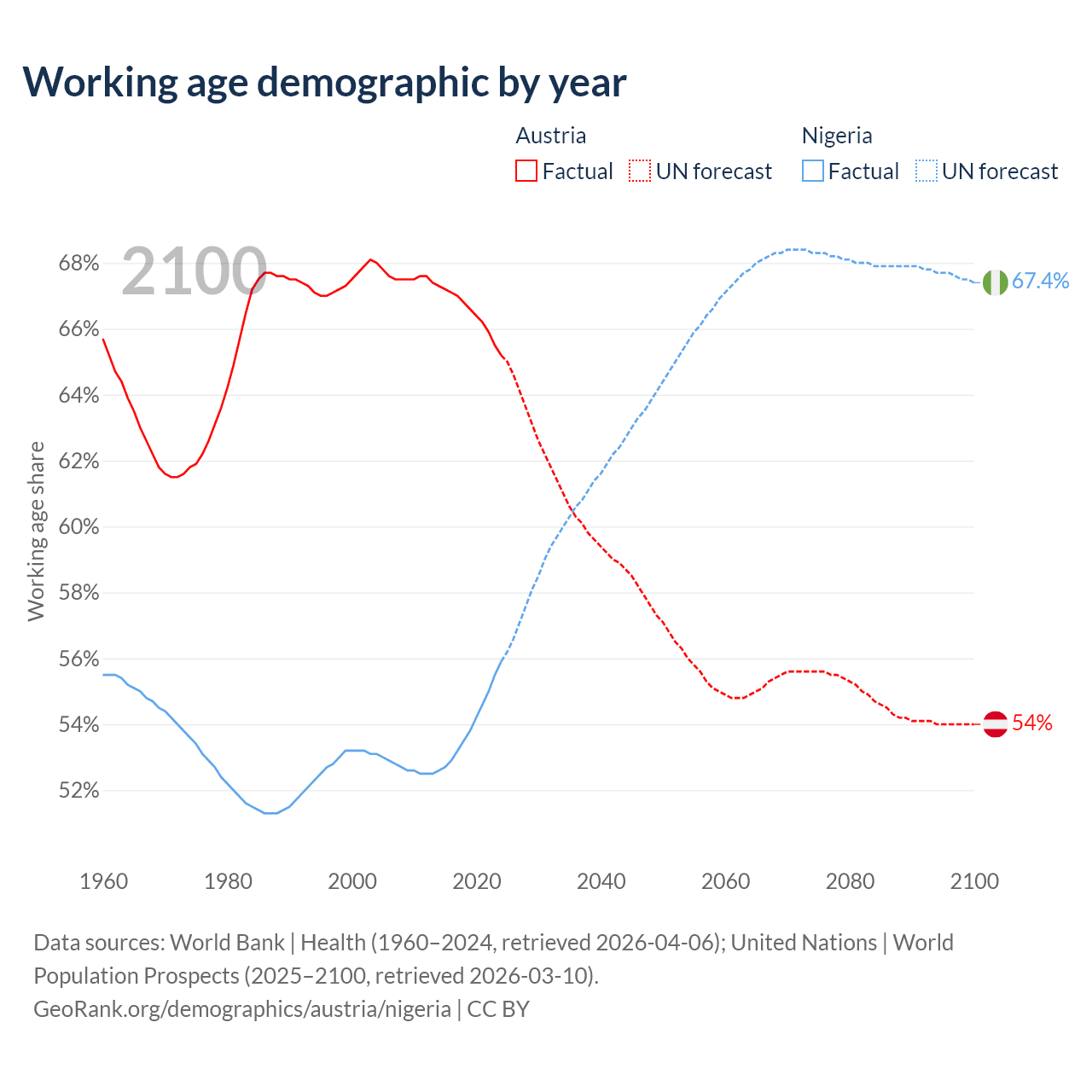 - Austria has 5.97M working age adults (aged 15-64) vs 136M in Nigeria.