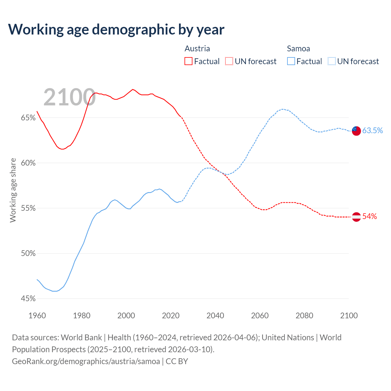 - Austria has 5.97M working age adults (aged 15-64) vs 123K in Samoa.