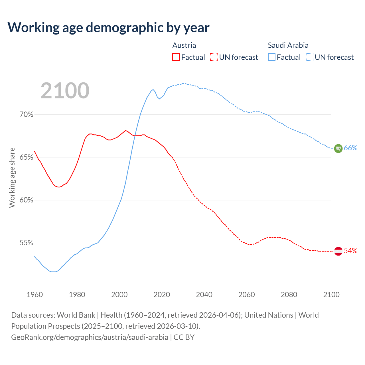 - Austria has 5.97M working age adults (aged 15-64) vs 26.9M in Saudi Arabia.
