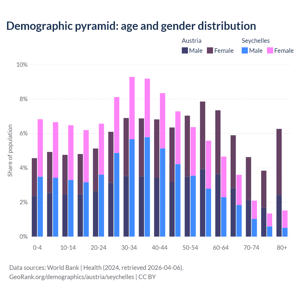 Demographics of Austria compared to the Seychelles: