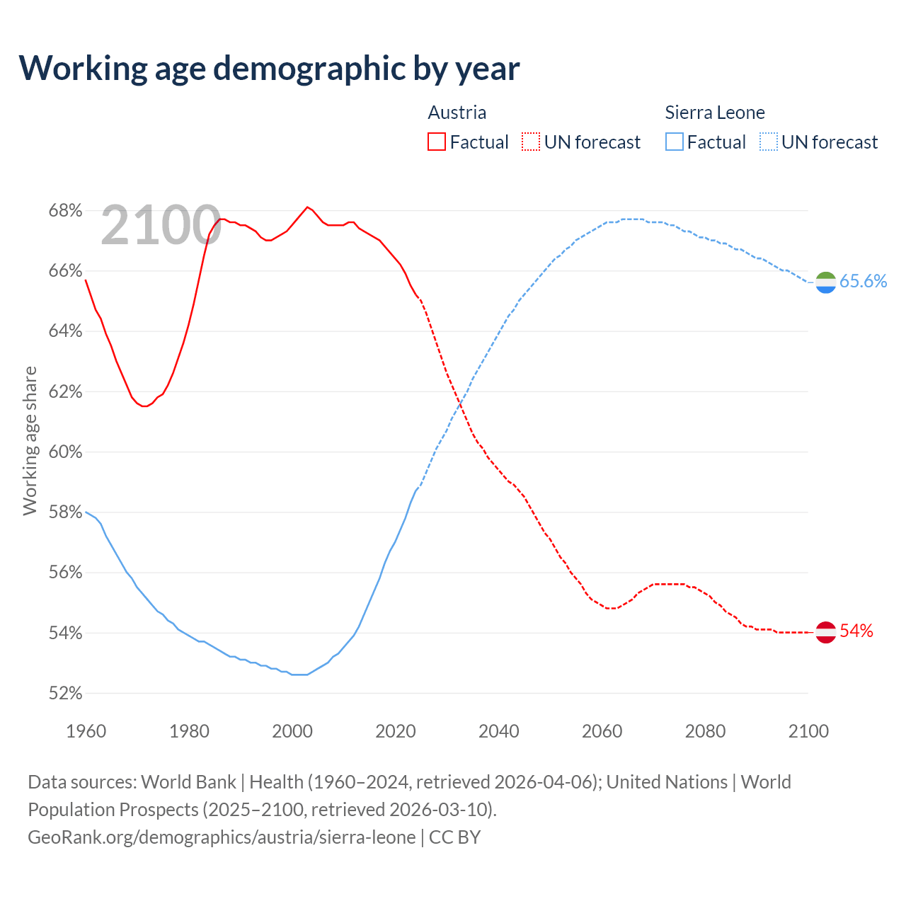 - Austria has 5.97M working age adults (aged 15-64) vs 5.31M in Sierra Leone.