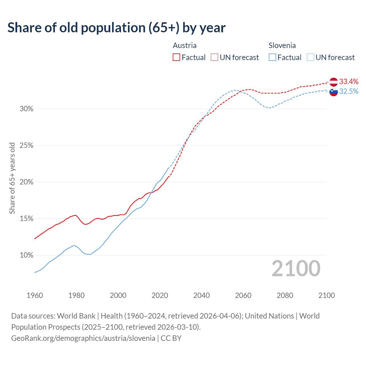 - The share of old-age demographic (65+) in Austria is 20.6% vs 21.8% in Slovenia.