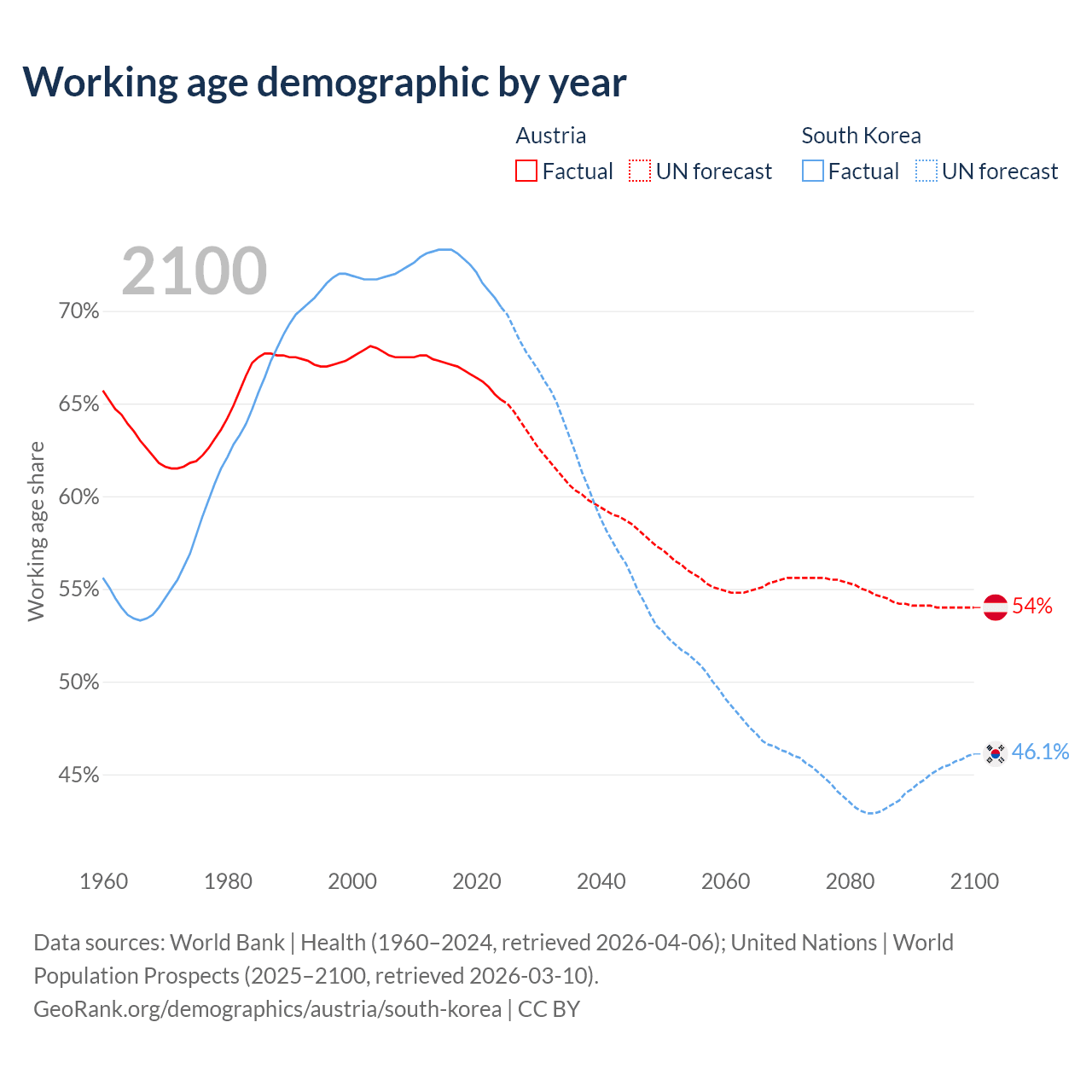 - Austria has 5.97M working age adults (aged 15-64) vs 36.2M in South Korea.