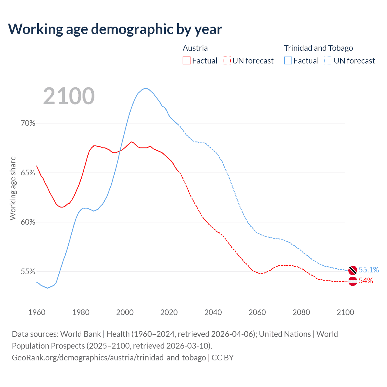 - Austria has 5.97M working age adults (aged 15-64) vs 960K in Trinidad and Tobago.
