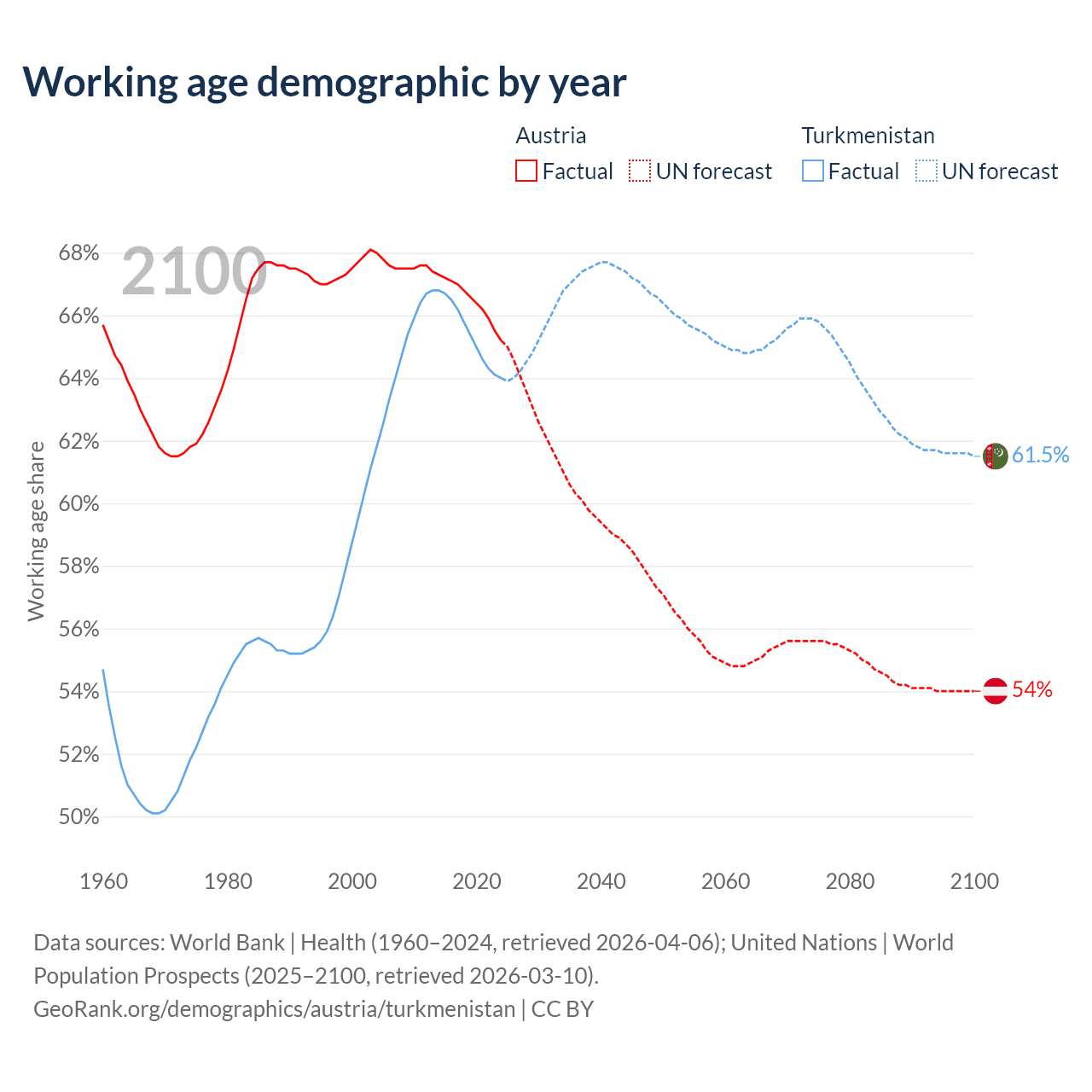 - Austria has 5.97M working age adults (aged 15-64) vs 4.97M in Turkmenistan.