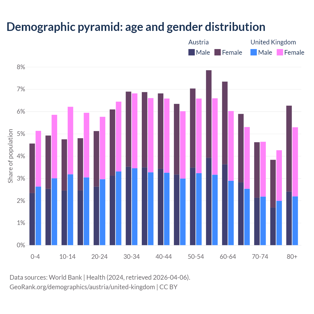 Demographics of Austria compared to the United Kingdom: