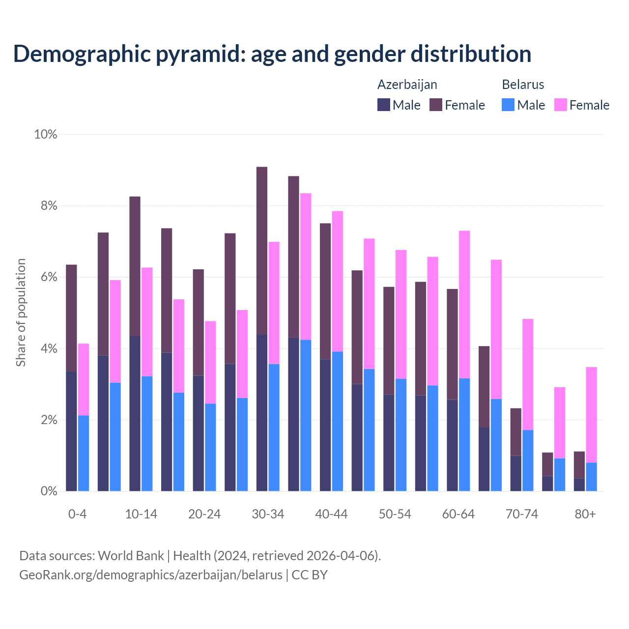 - As of 2026, the population of Azerbaijan is 10.3M vs 9.01M in Belarus.