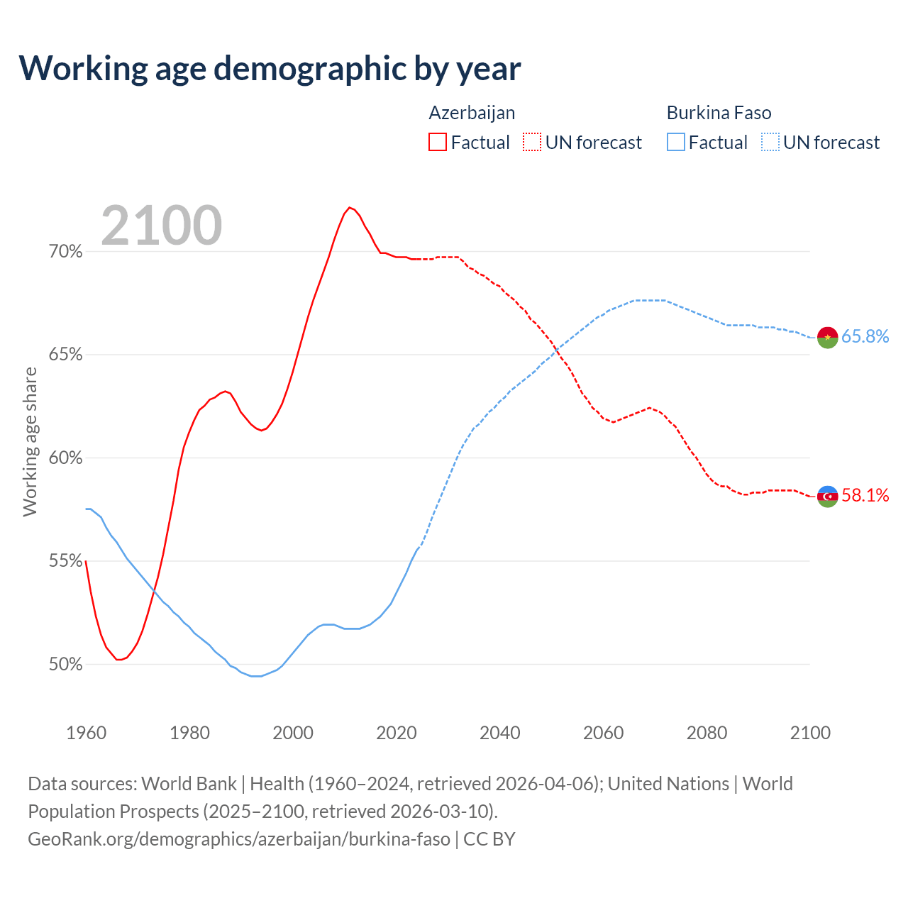 - Azerbaijan has 7.2M working age adults (aged 15-64) vs 13.8M in Burkina Faso.