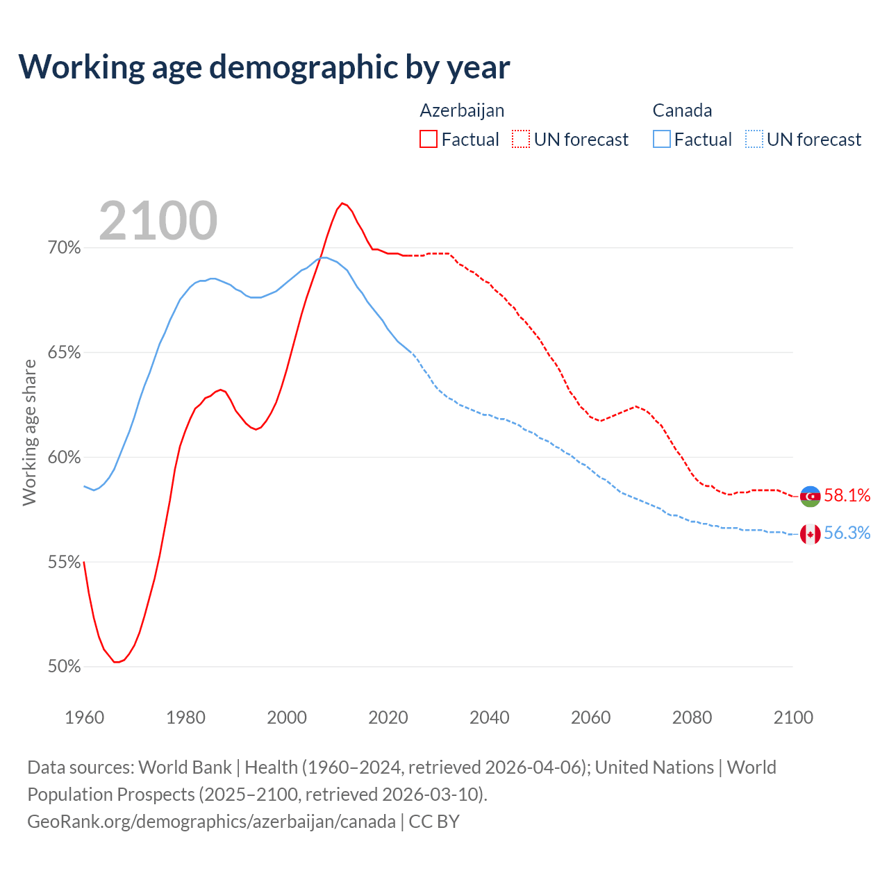 - Azerbaijan has 7.2M working age adults (aged 15-64) vs 27.5M in Canada.