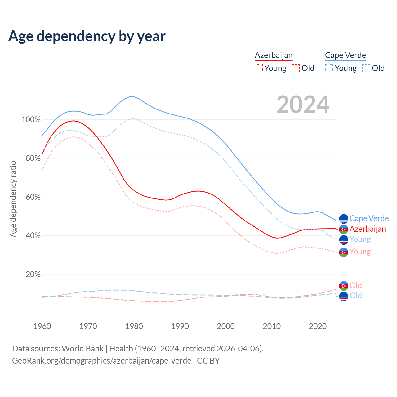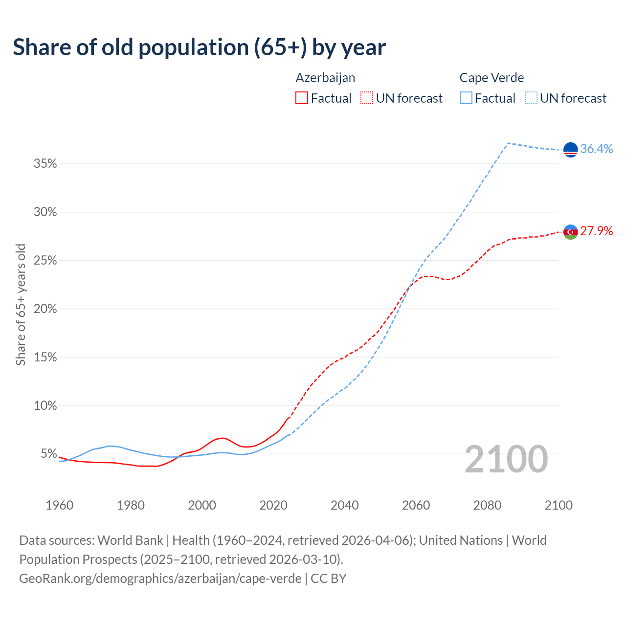 - The share of old-age demographic (65+) in Azerbaijan is 8.56% vs 6.86% in Cape Verde.