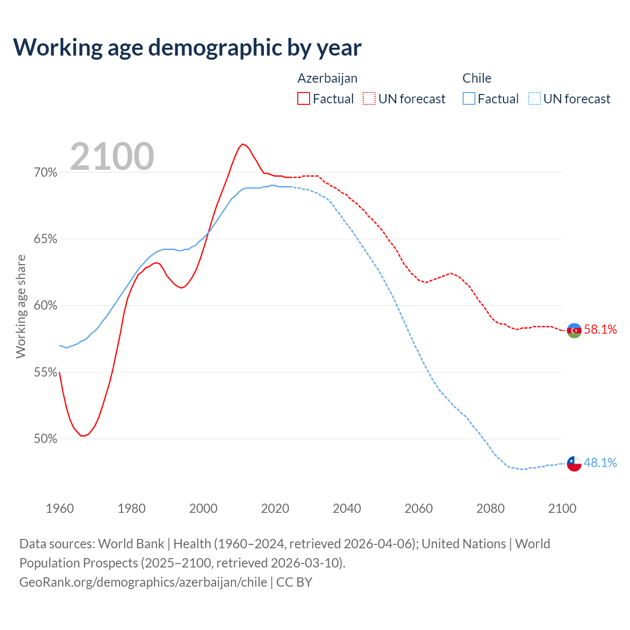 - Azerbaijan has 7.2M working age adults (aged 15-64) vs 13.8M in Chile.