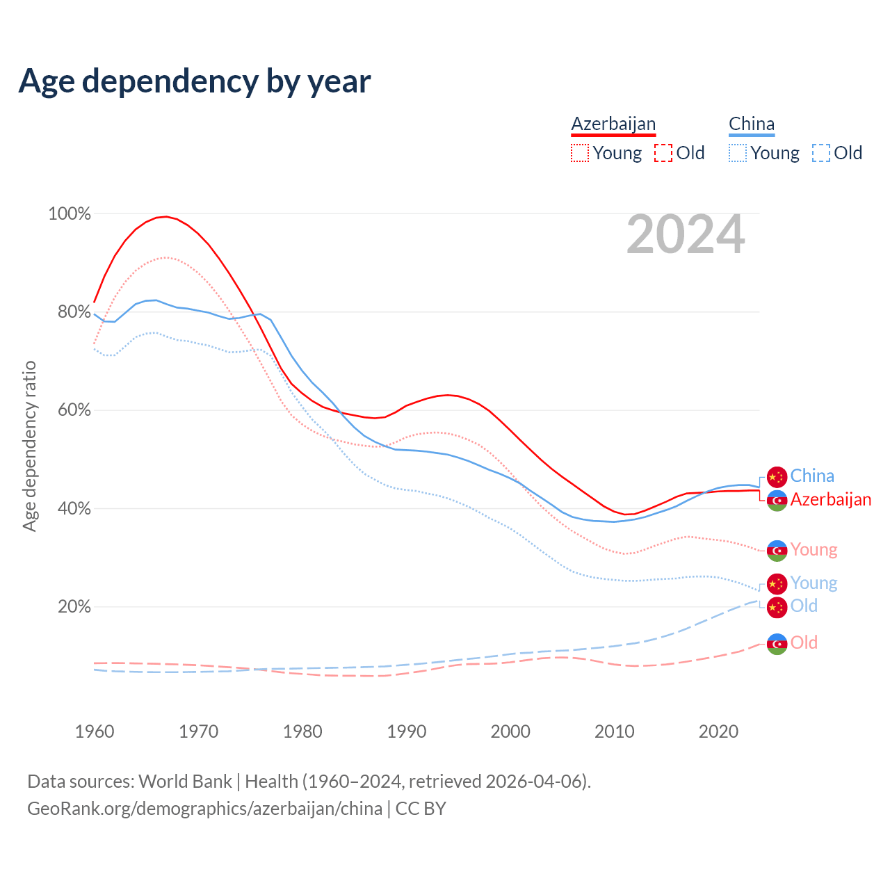 - Azerbaijan is ranked 82/196 by median age (oldest to youngest) vs 44/196 for China.
