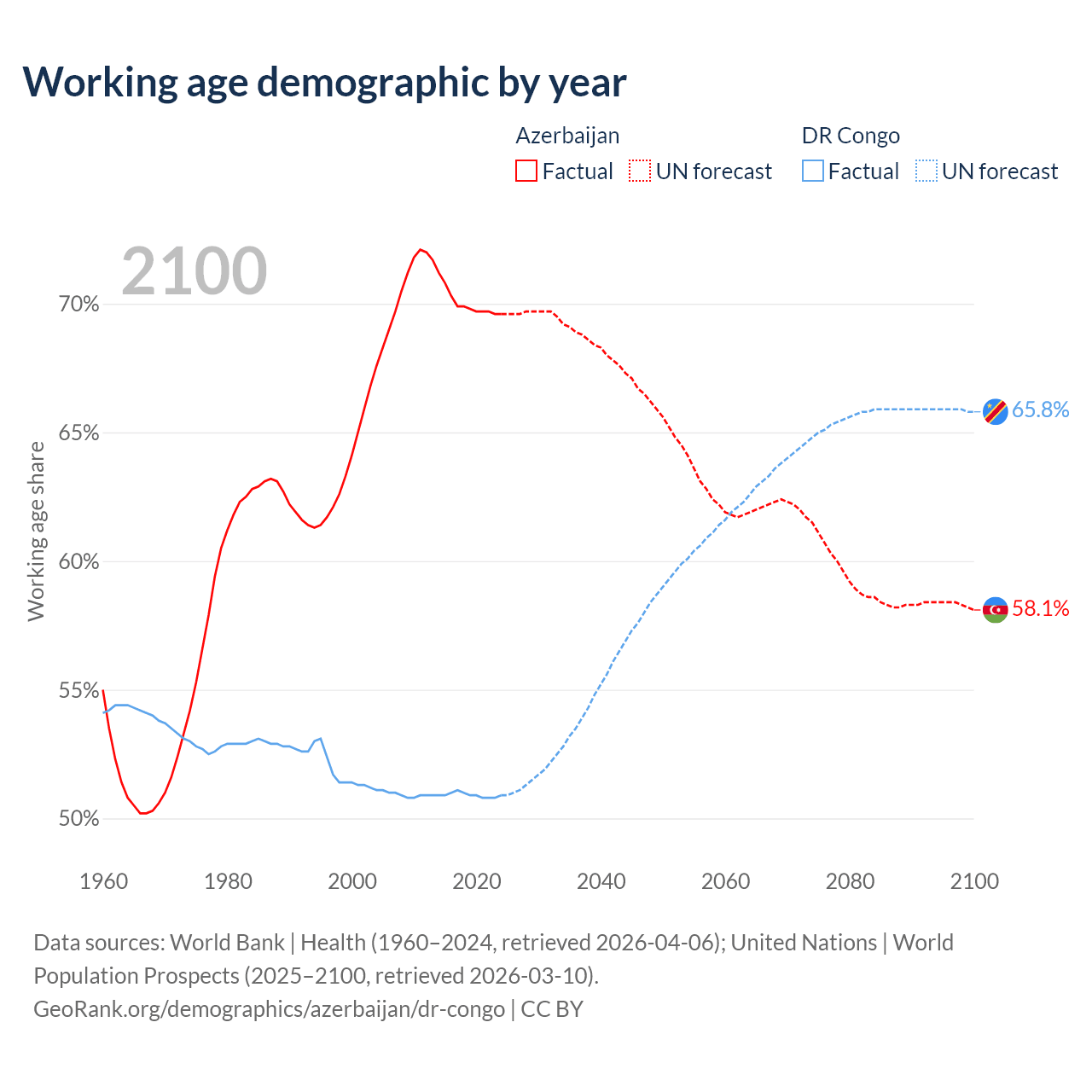 - Azerbaijan has 7.2M working age adults (aged 15-64) vs 59.8M in the DR Congo.