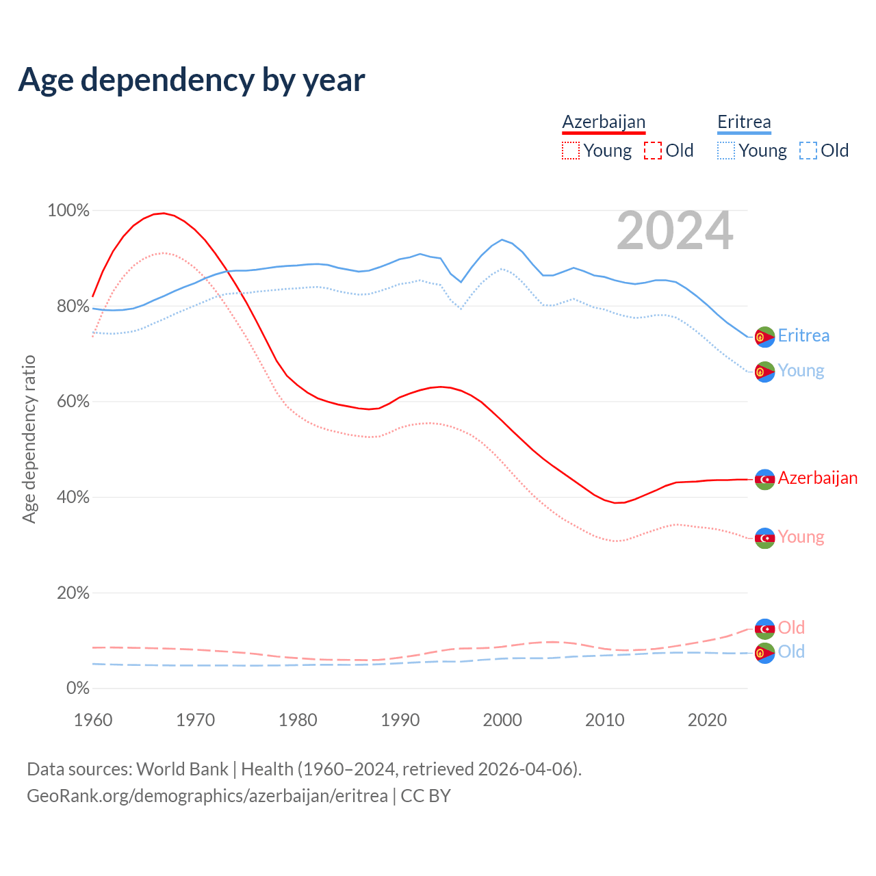 - The share of old-age demographic (65+) in Azerbaijan is 8.56% vs 4.2% in Eritrea.