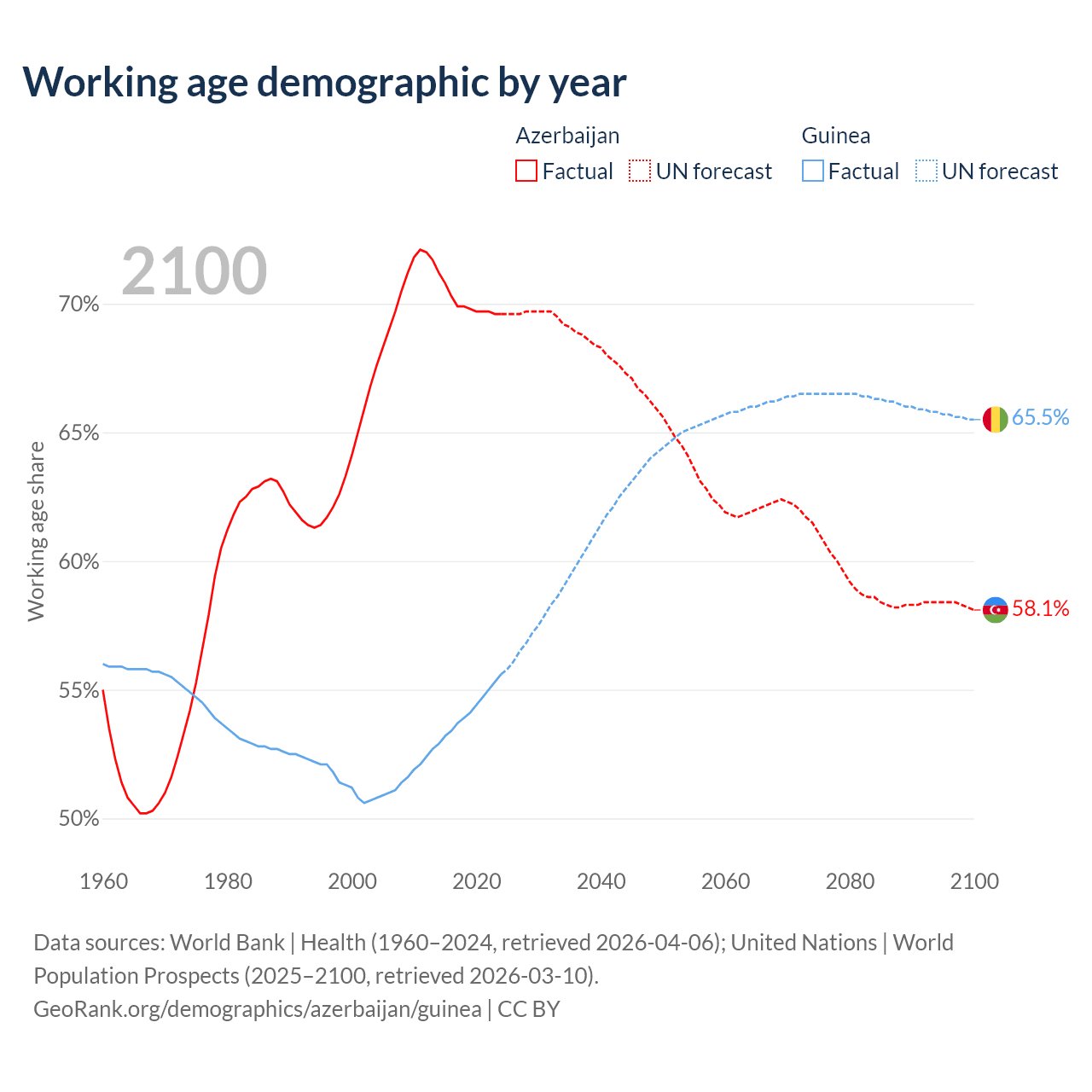 - As of 2026, the population of Azerbaijan is 10.3M vs 15.5M in Guinea - 1.5 times difference.