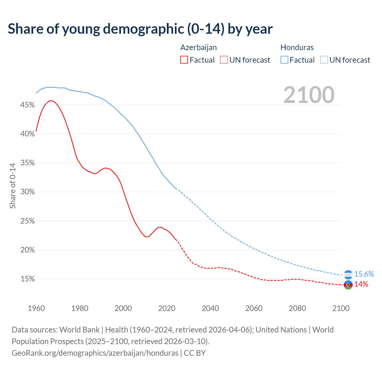 - As of 2026, the population of Azerbaijan is 10.3M vs 11.2M in Honduras.