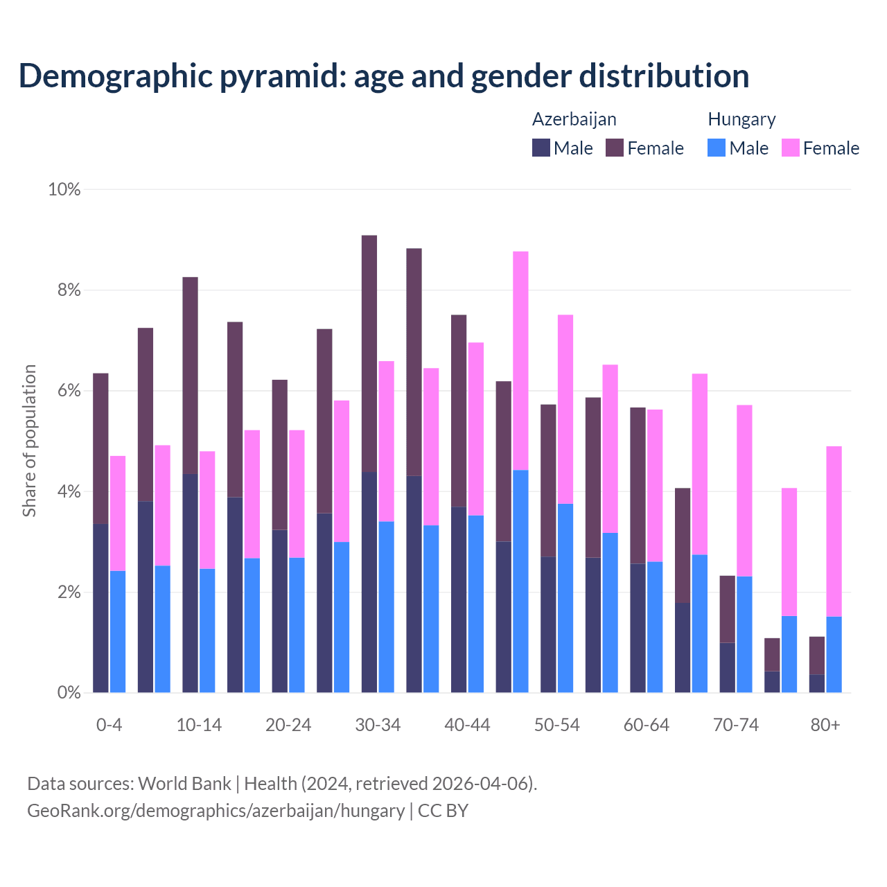 Demographics of Azerbaijan compared to Hungary: