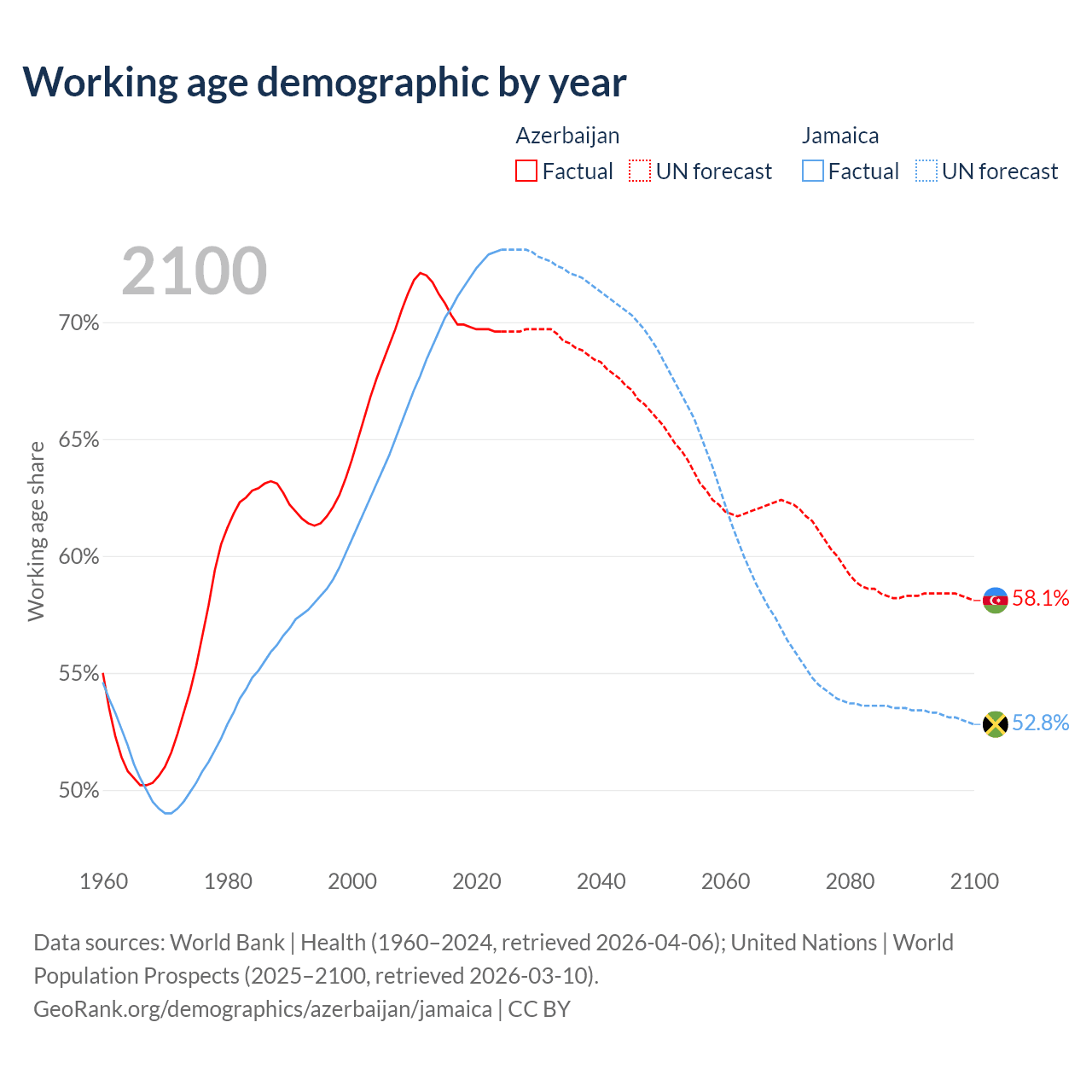 - Azerbaijan has 7.2M working age adults (aged 15-64) vs 2.07M in Jamaica.