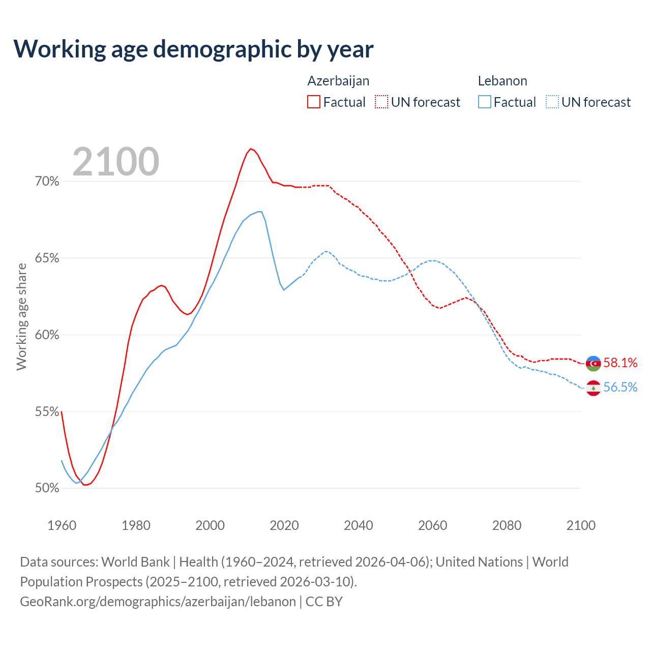 - Azerbaijan has 7.2M working age adults (aged 15-64) vs 3.76M in Lebanon.