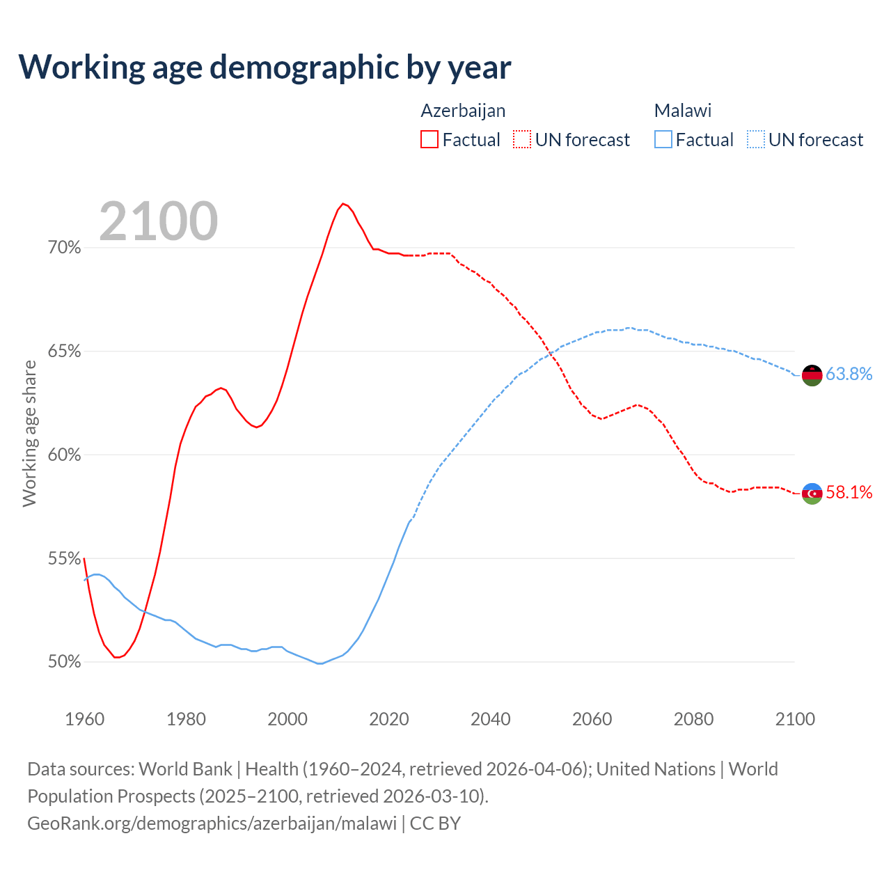 - Azerbaijan has 7.2M working age adults (aged 15-64) vs 13M in Malawi.
