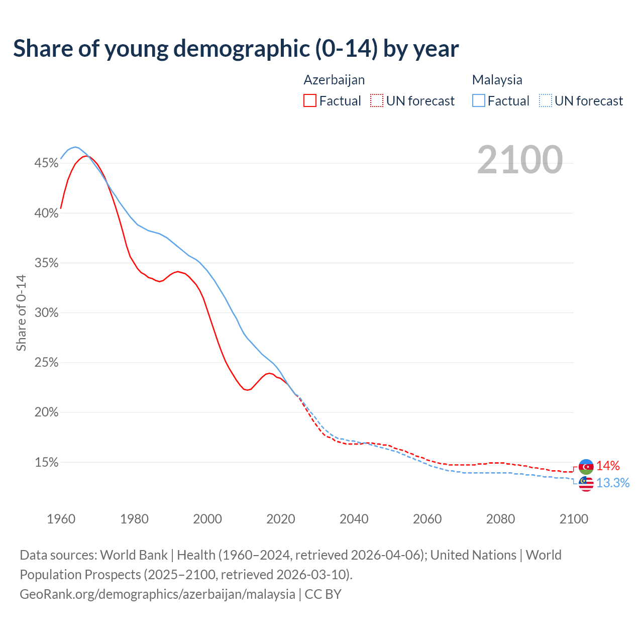 - The share of young demographic (0-15 years old) in Azerbaijan is 21.8% vs 21.8% in Malaysia.