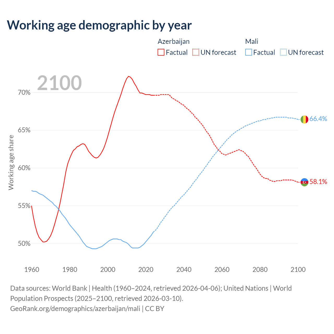 - Azerbaijan has 7.2M working age adults (aged 15-64) vs 13.5M in Mali.