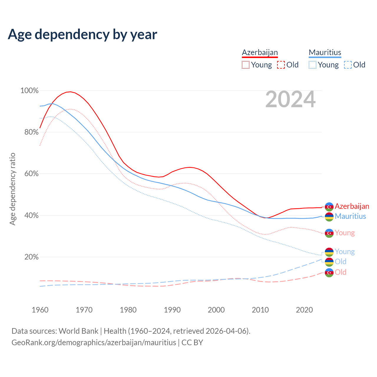 - Azerbaijan is ranked 82/196 by median age (oldest to youngest) vs 57/196 for Mauritius.