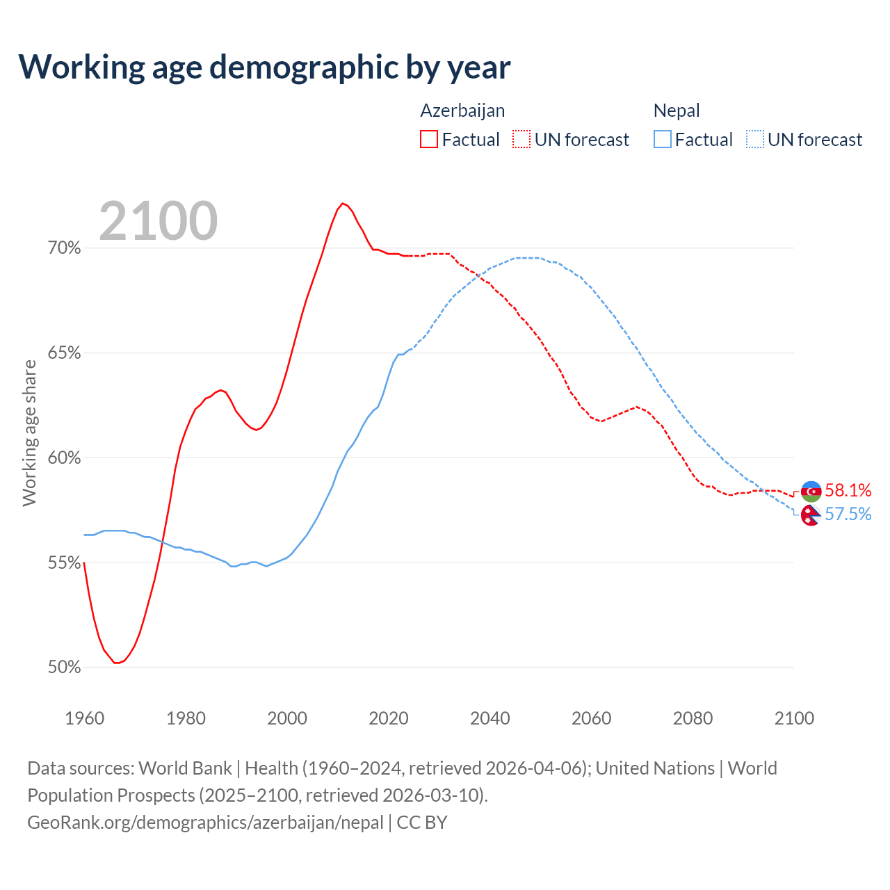 - Azerbaijan has 7.2M working age adults (aged 15-64) vs 19.3M in Nepal.