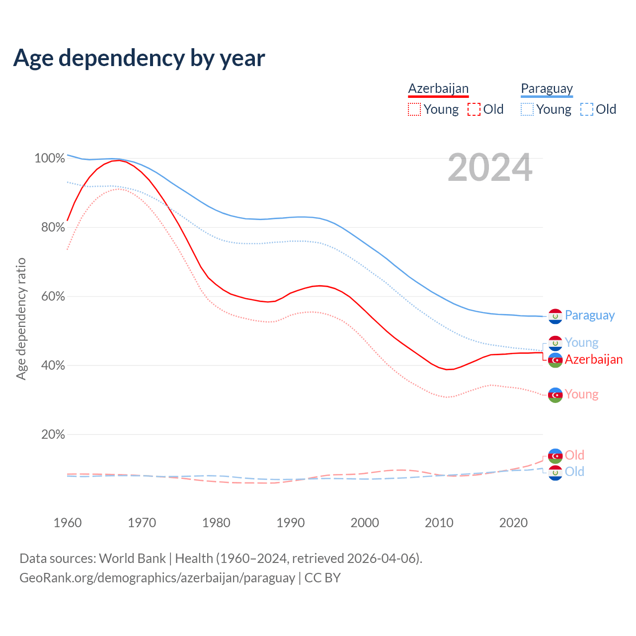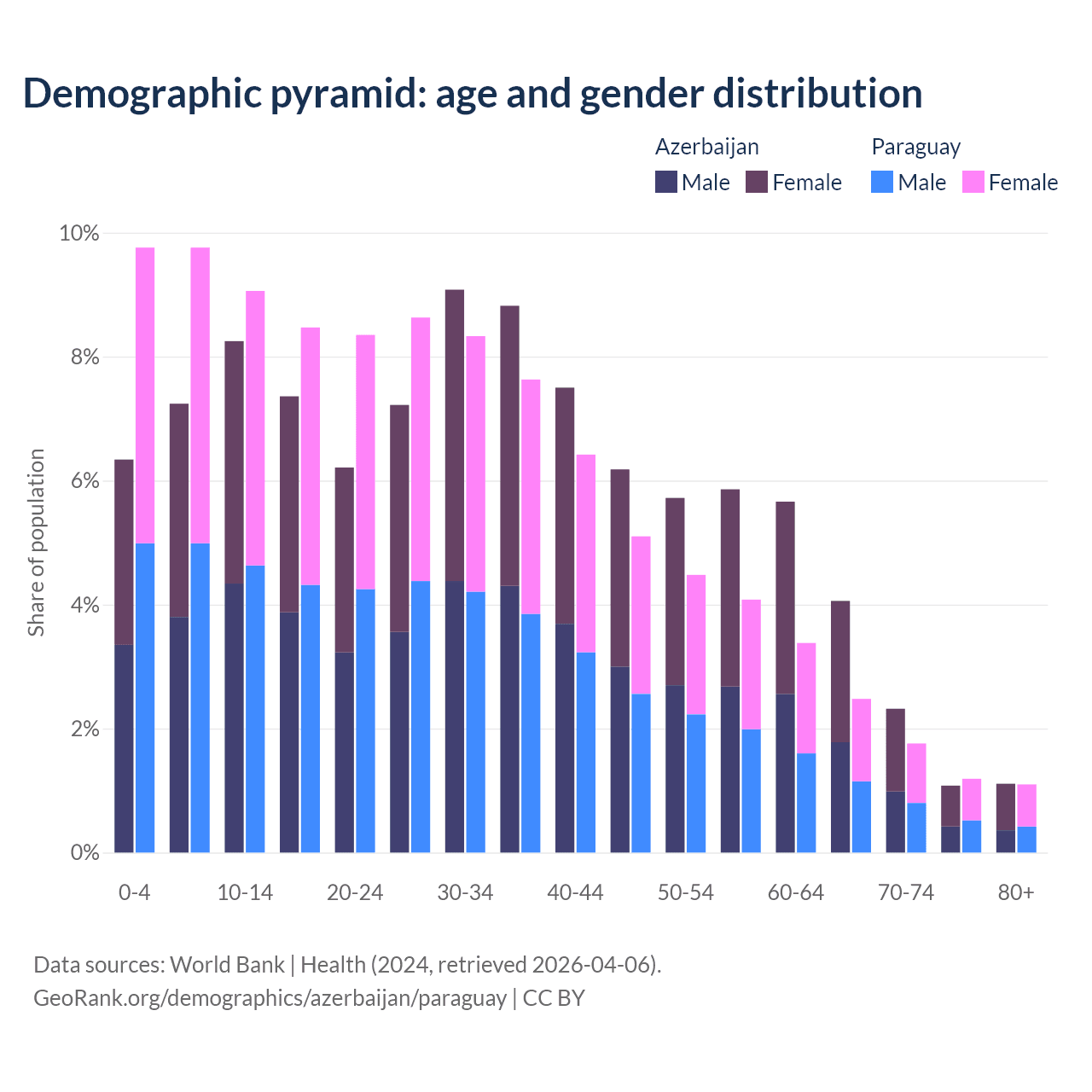 - Azerbaijan is ranked 82/196 by median age (oldest to youngest) vs 118/196 for Paraguay.