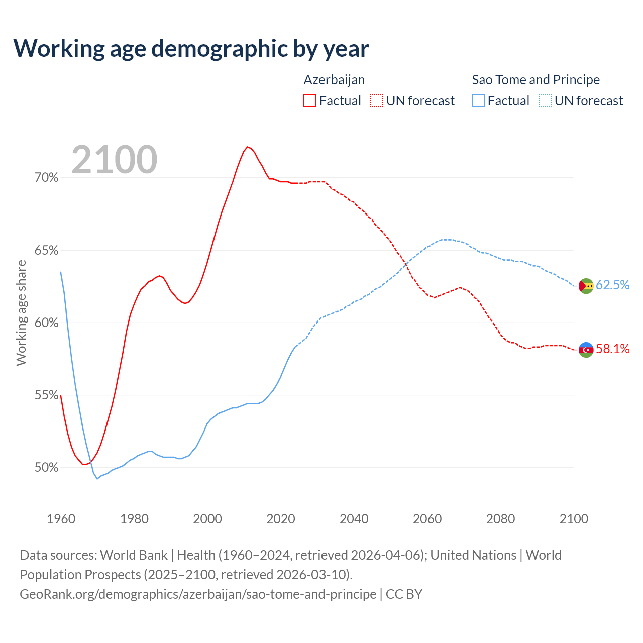 - Azerbaijan has 7.2M working age adults (aged 15-64) vs 144K in Sao Tome and Principe.