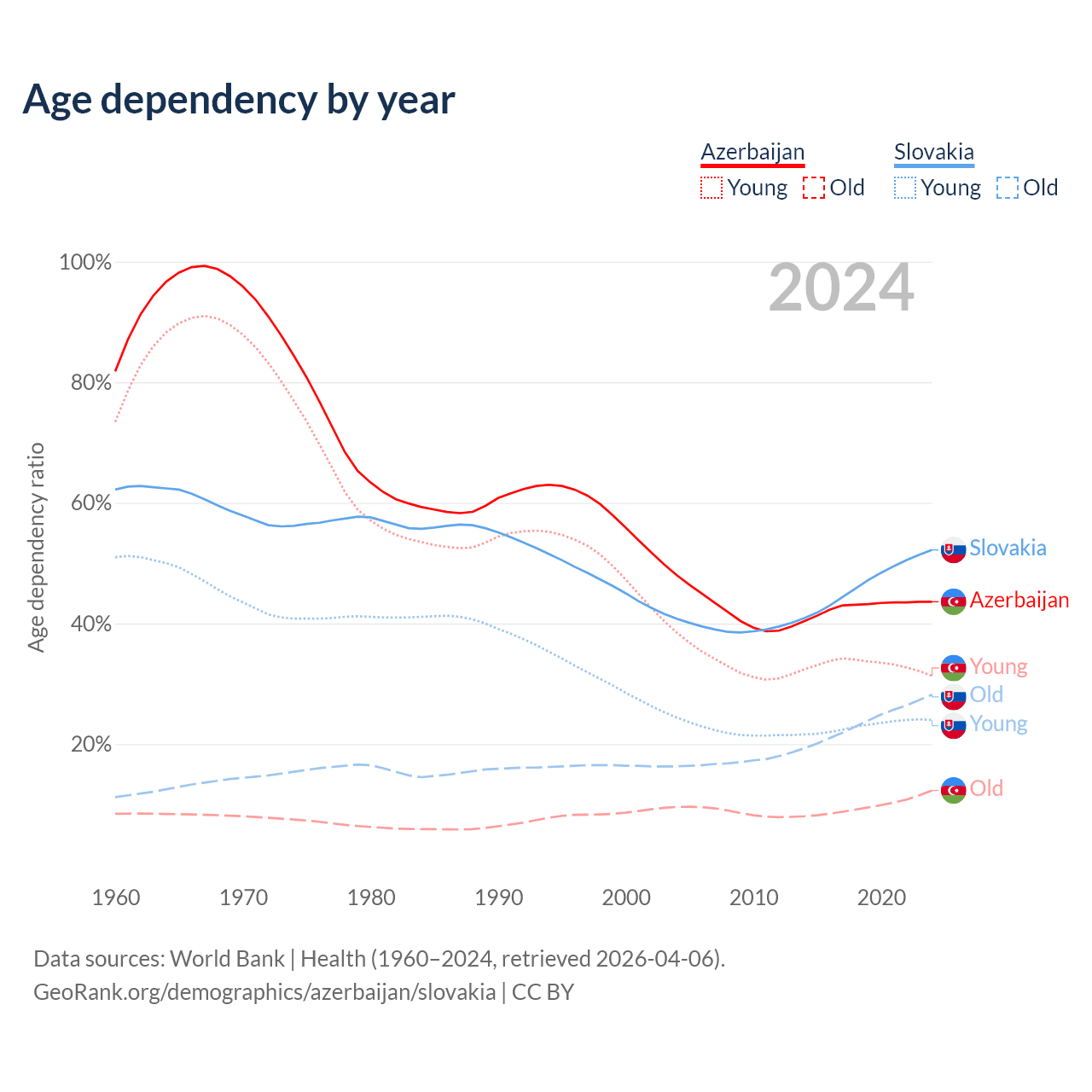- Azerbaijan is ranked 82/196 by median age (oldest to youngest) vs 31/196 for Slovakia.