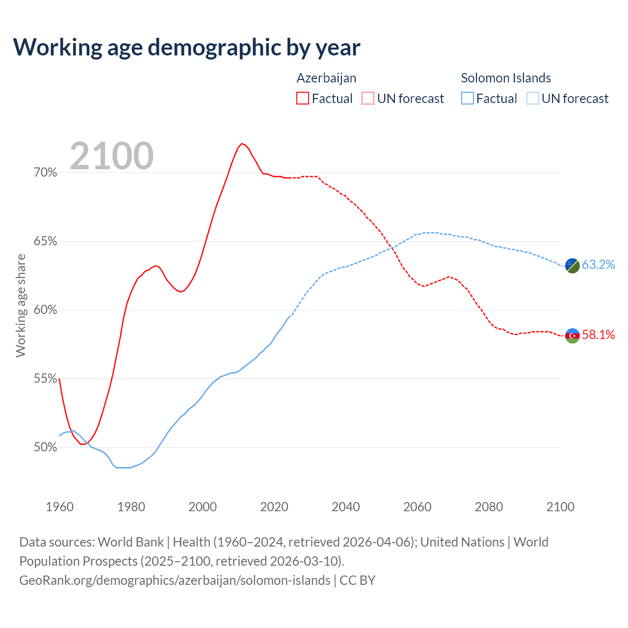 - Azerbaijan has 7.2M working age adults (aged 15-64) vs 513K in the Solomon Islands.