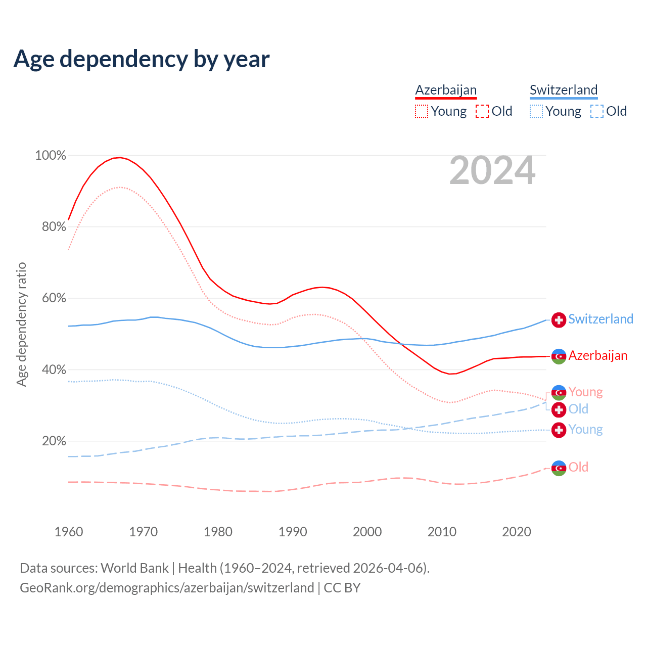 - Azerbaijan is ranked 82/196 by median age (oldest to youngest) vs 24/196 for Switzerland.