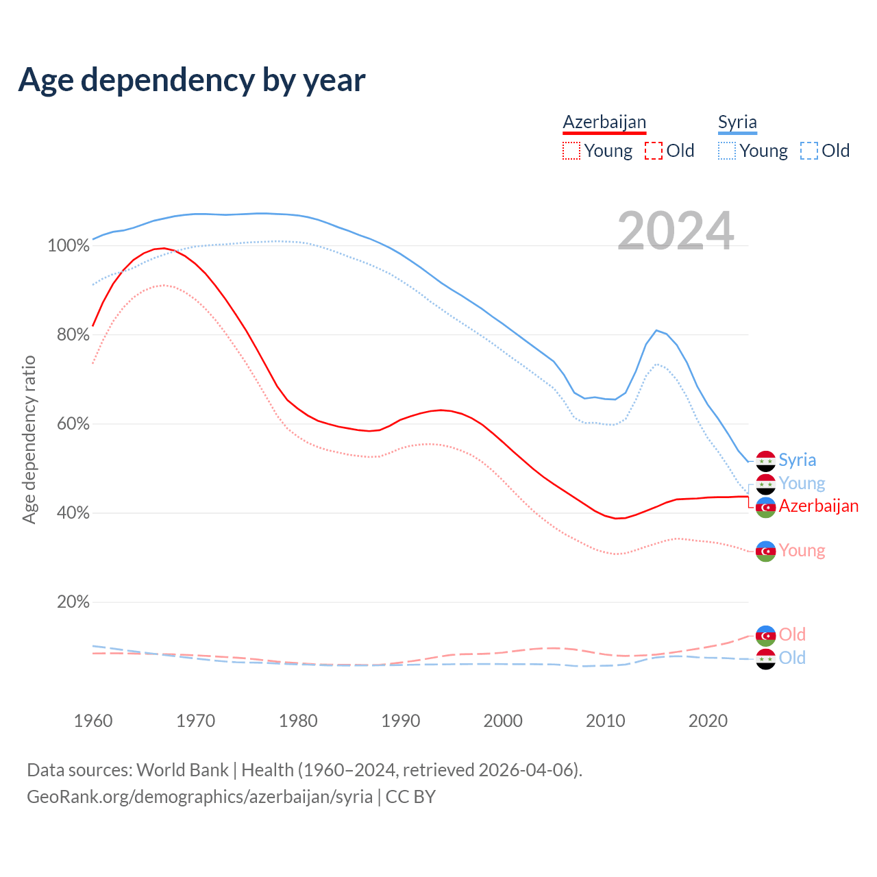 - The share of old-age demographic (65+) in Azerbaijan is 8.56% vs 4.74% in Syria.