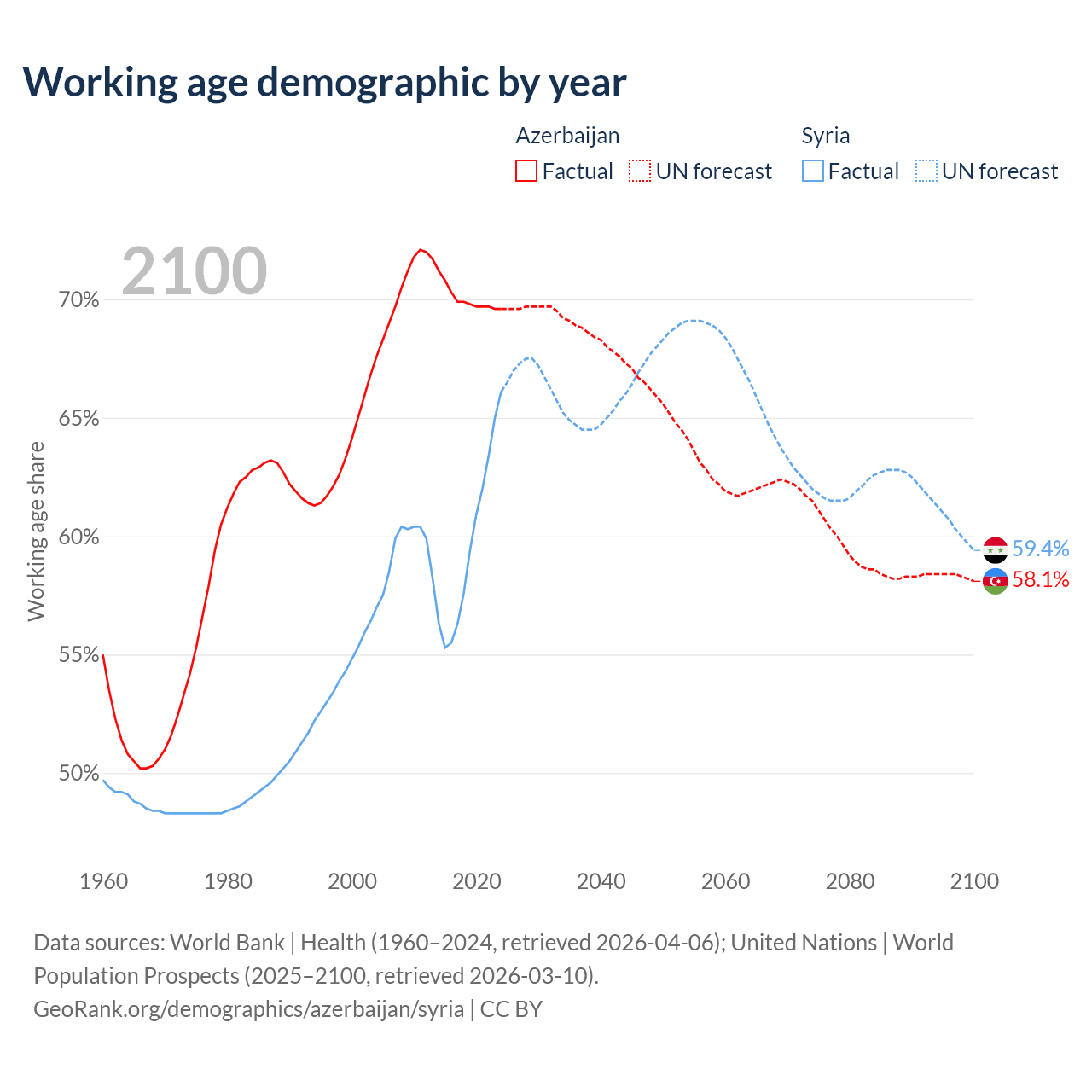 - Azerbaijan has 7.2M working age adults (aged 15-64) vs 17.7M in Syria.