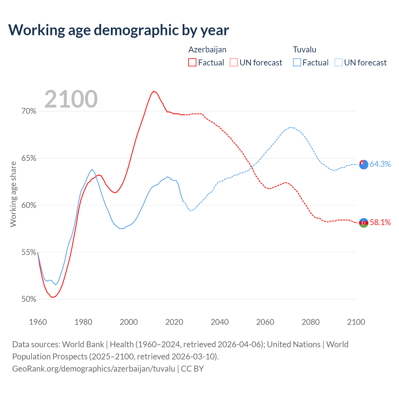 - Azerbaijan has 7.2M working age adults (aged 15-64) vs 5.64K in Tuvalu.
