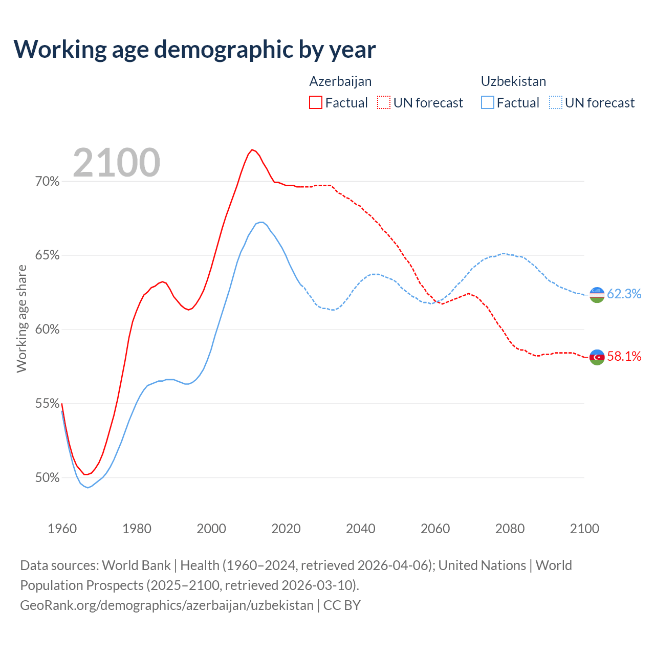 - Azerbaijan has 7.2M working age adults (aged 15-64) vs 23.9M in Uzbekistan.