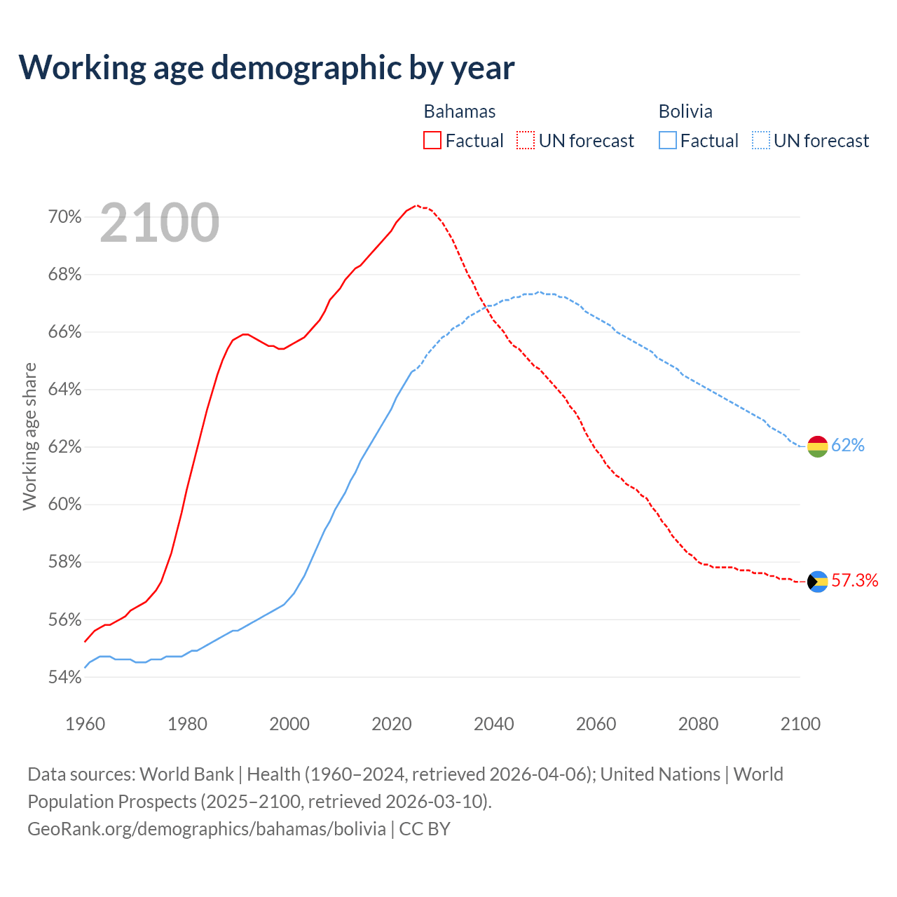 - The Bahamas has 285K working age adults (aged 15-64) vs 8.26M in Bolivia.