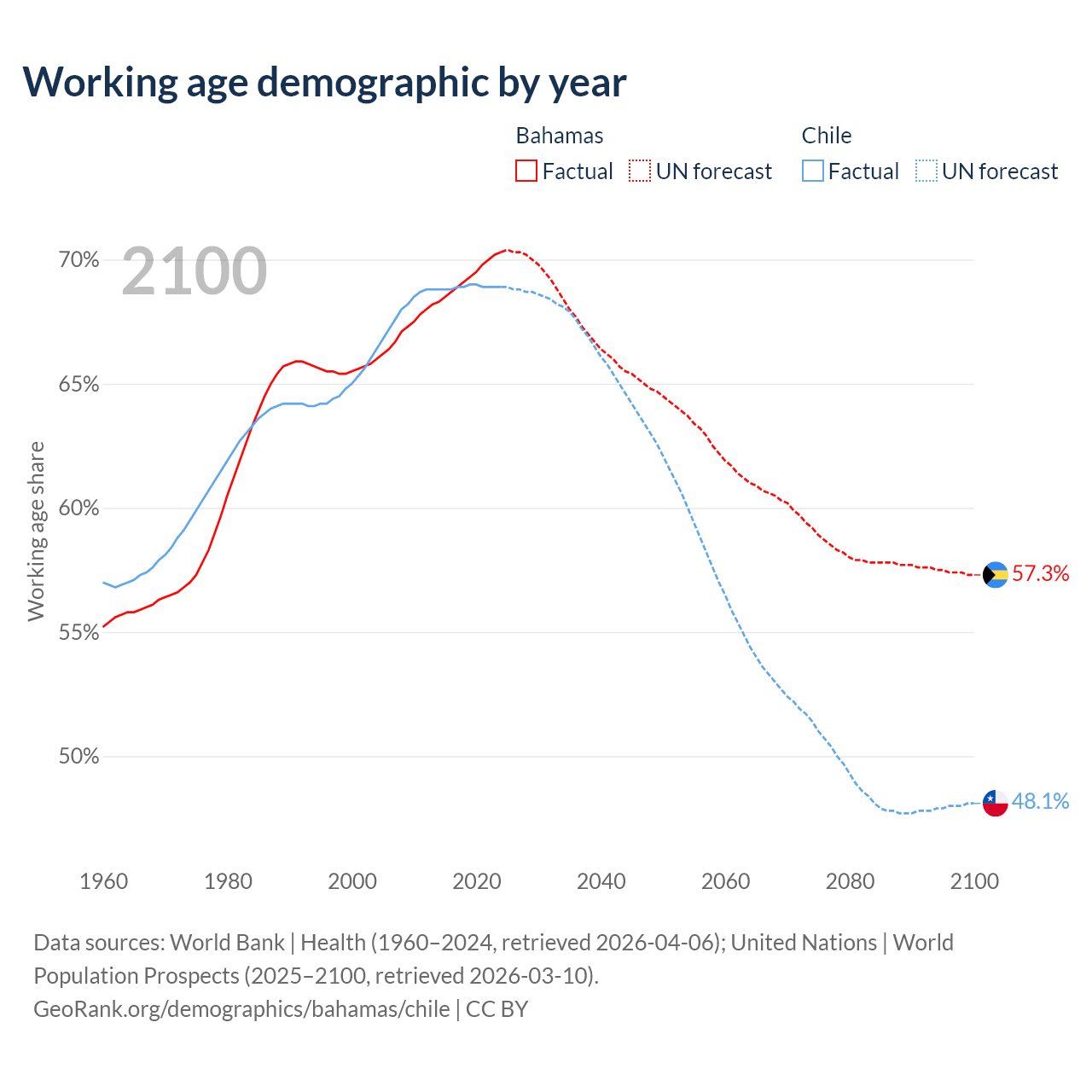 - The Bahamas has 285K working age adults (aged 15-64) vs 13.8M in Chile.