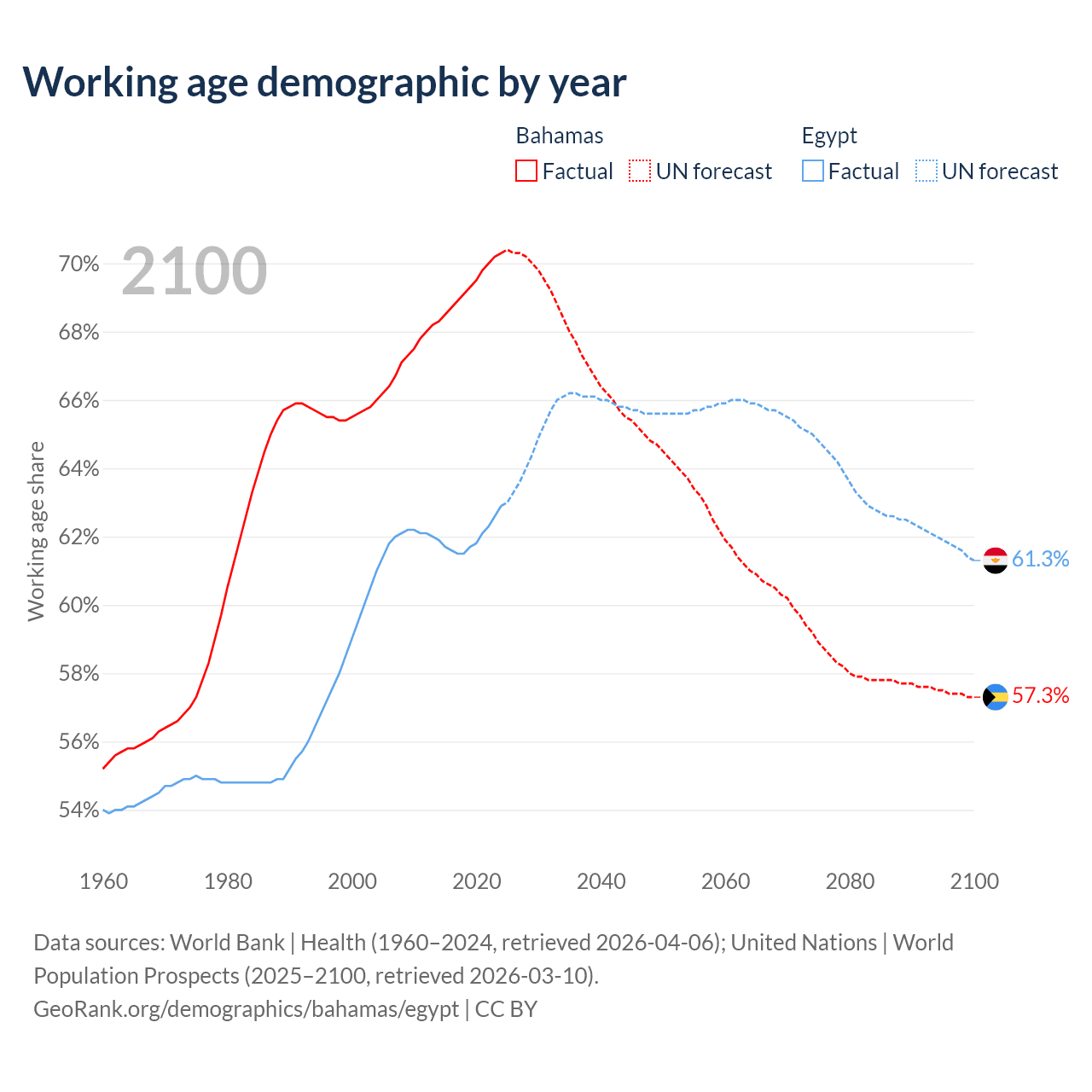 - The Bahamas has 285K working age adults (aged 15-64) vs 75.9M in Egypt.