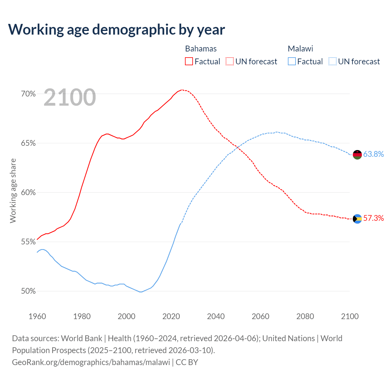- The Bahamas has 285K working age adults (aged 15-64) vs 13M in Malawi.