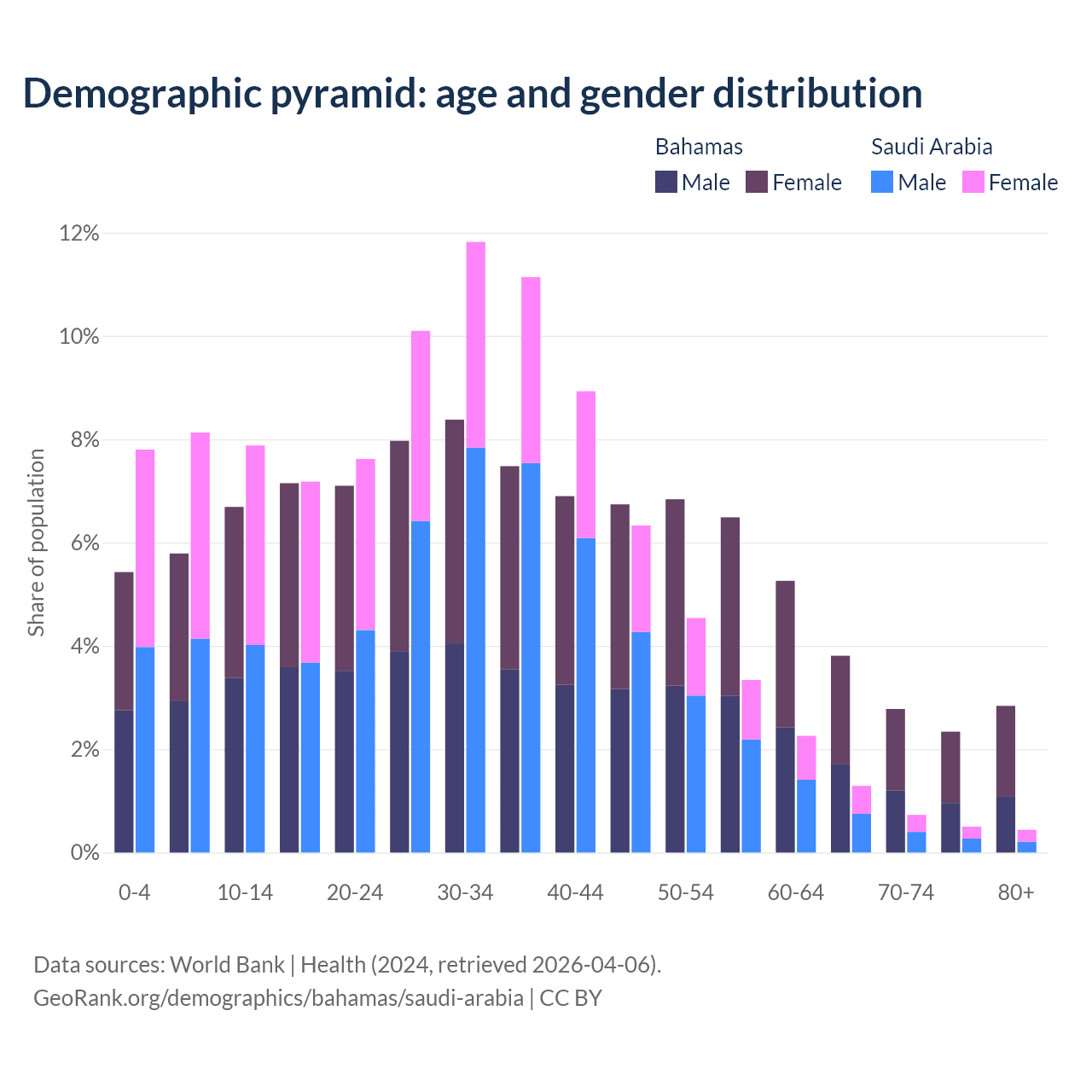 Demographics of the Bahamas compared to Saudi Arabia: