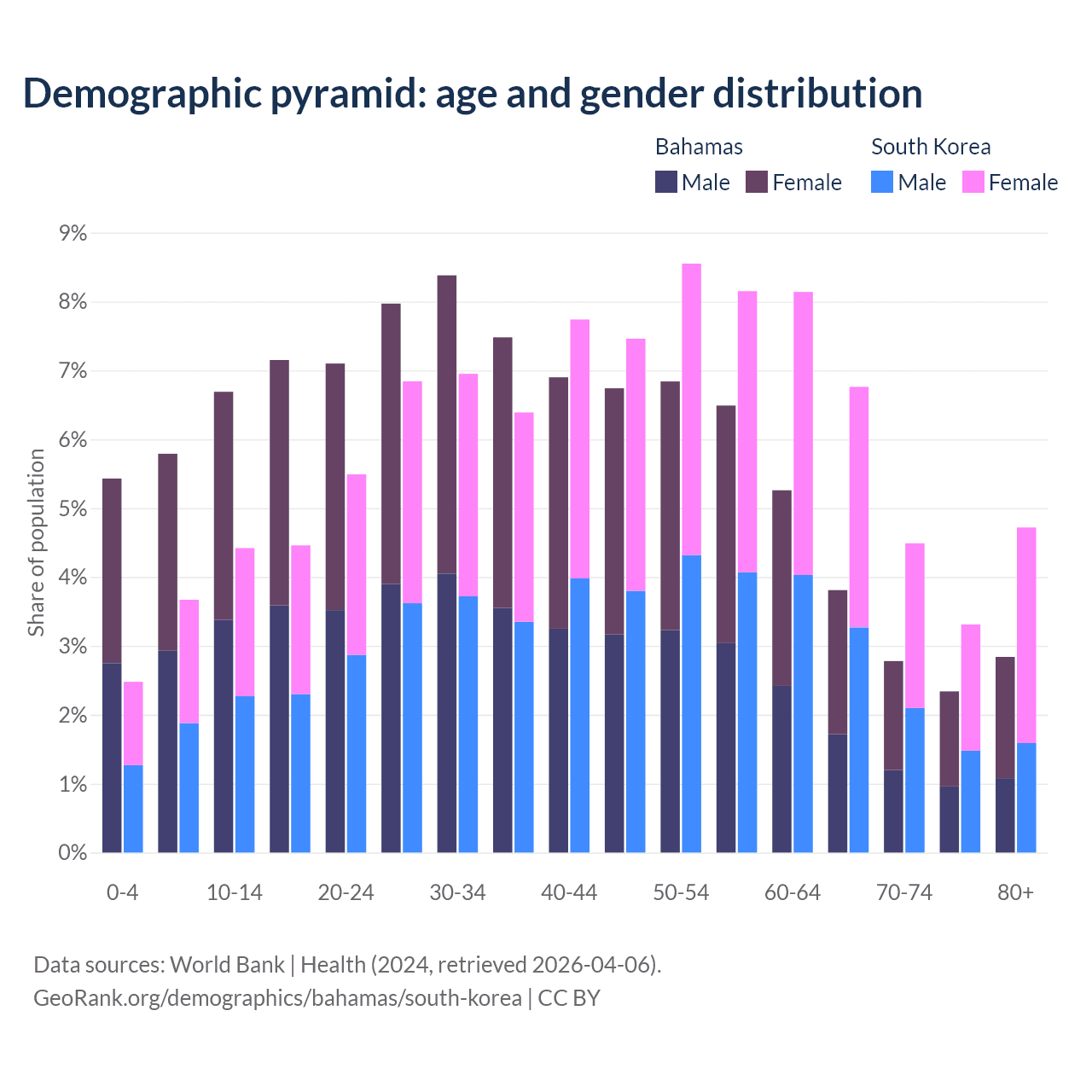 Demographics of the Bahamas compared to South Korea: