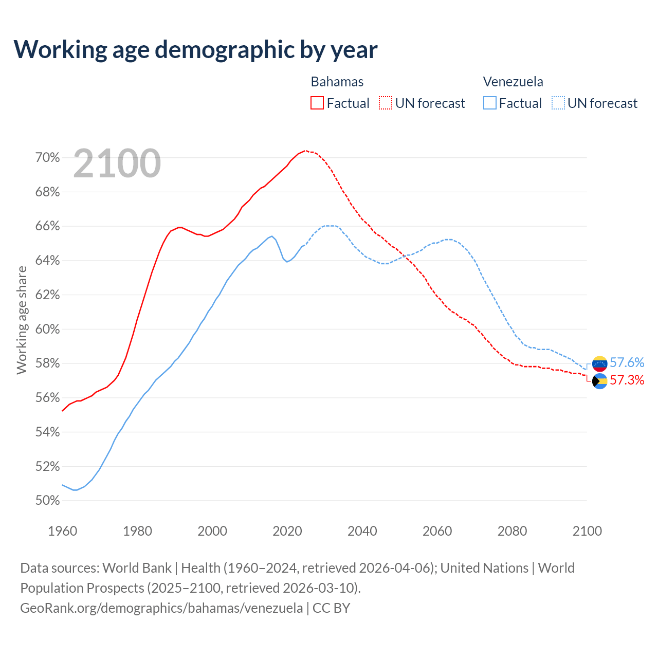 - The Bahamas has 285K working age adults (aged 15-64) vs 18.6M in Venezuela.