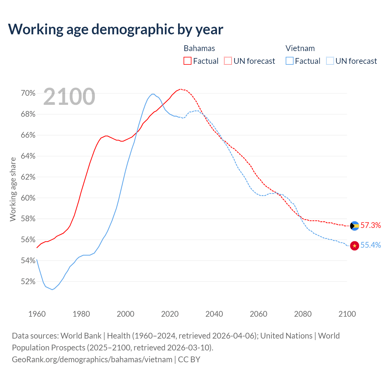 - The Bahamas has 285K working age adults (aged 15-64) vs 69.3M in Vietnam.