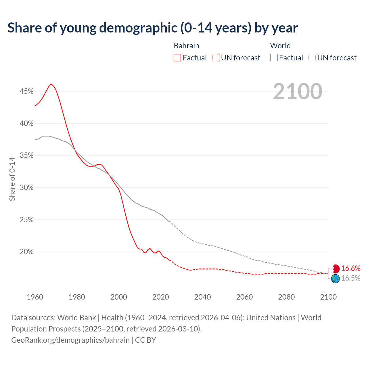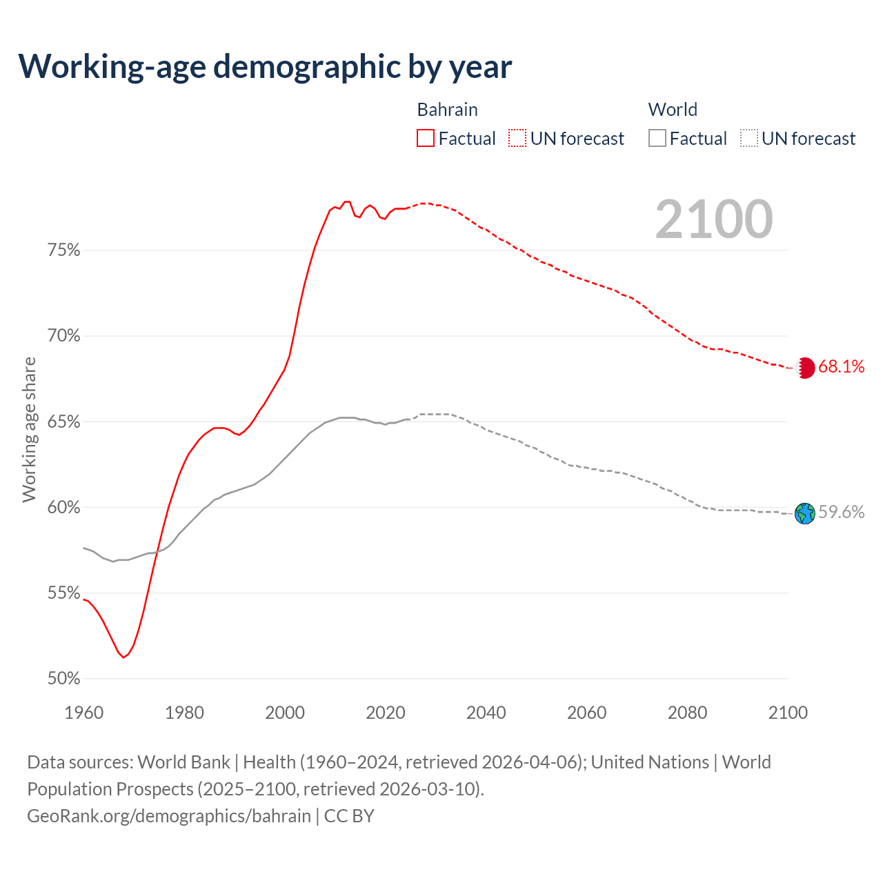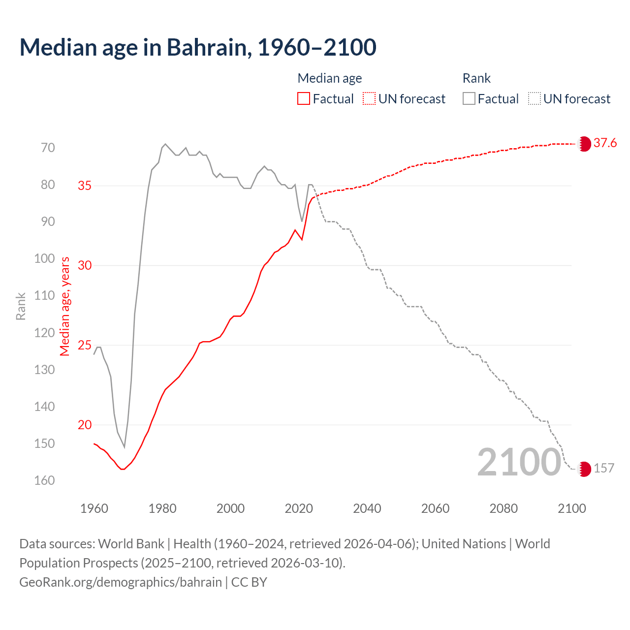 Median age in Bahrain, 1960–2100