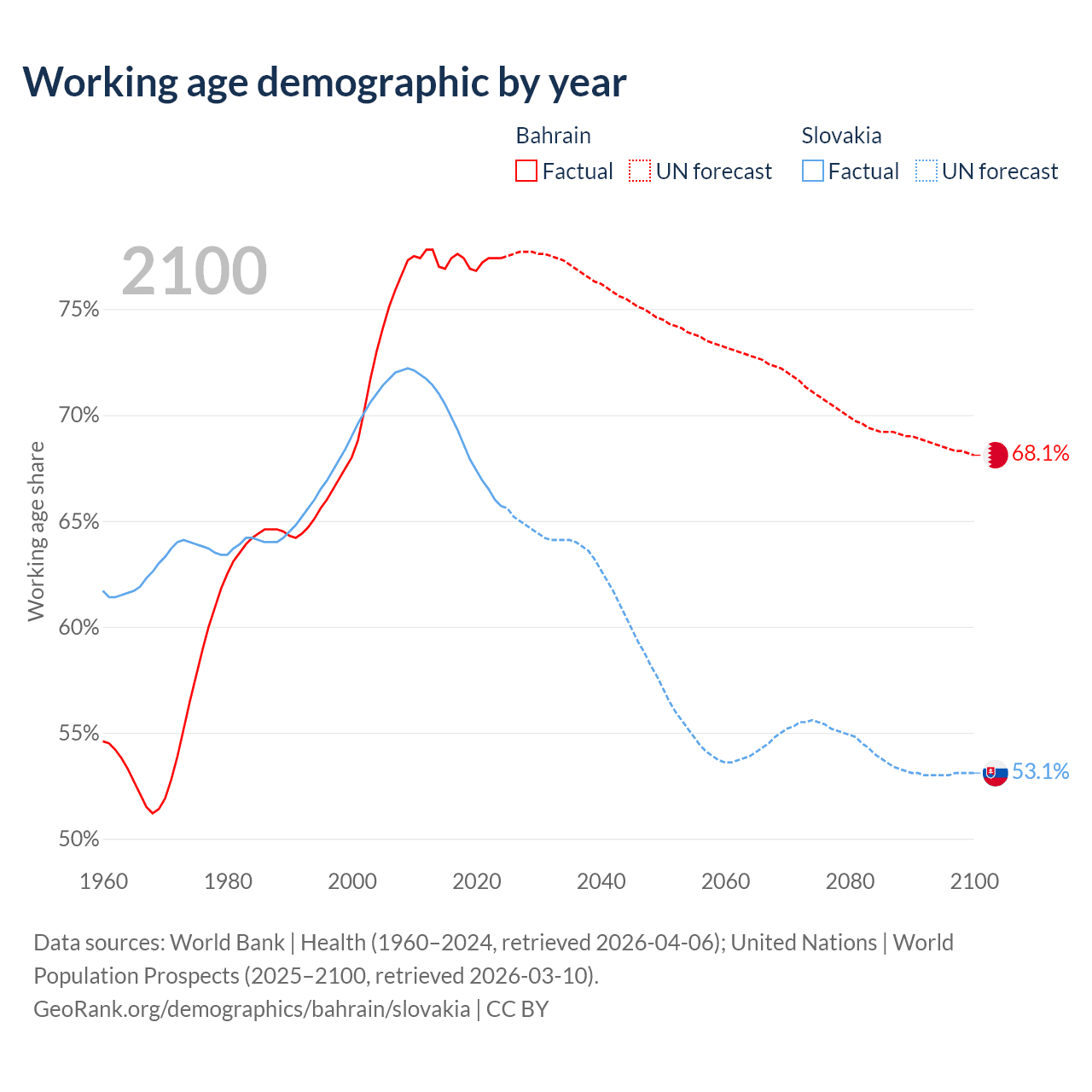 - Bahrain has 1.29M working age adults (aged 15-64) vs 3.52M in Slovakia.